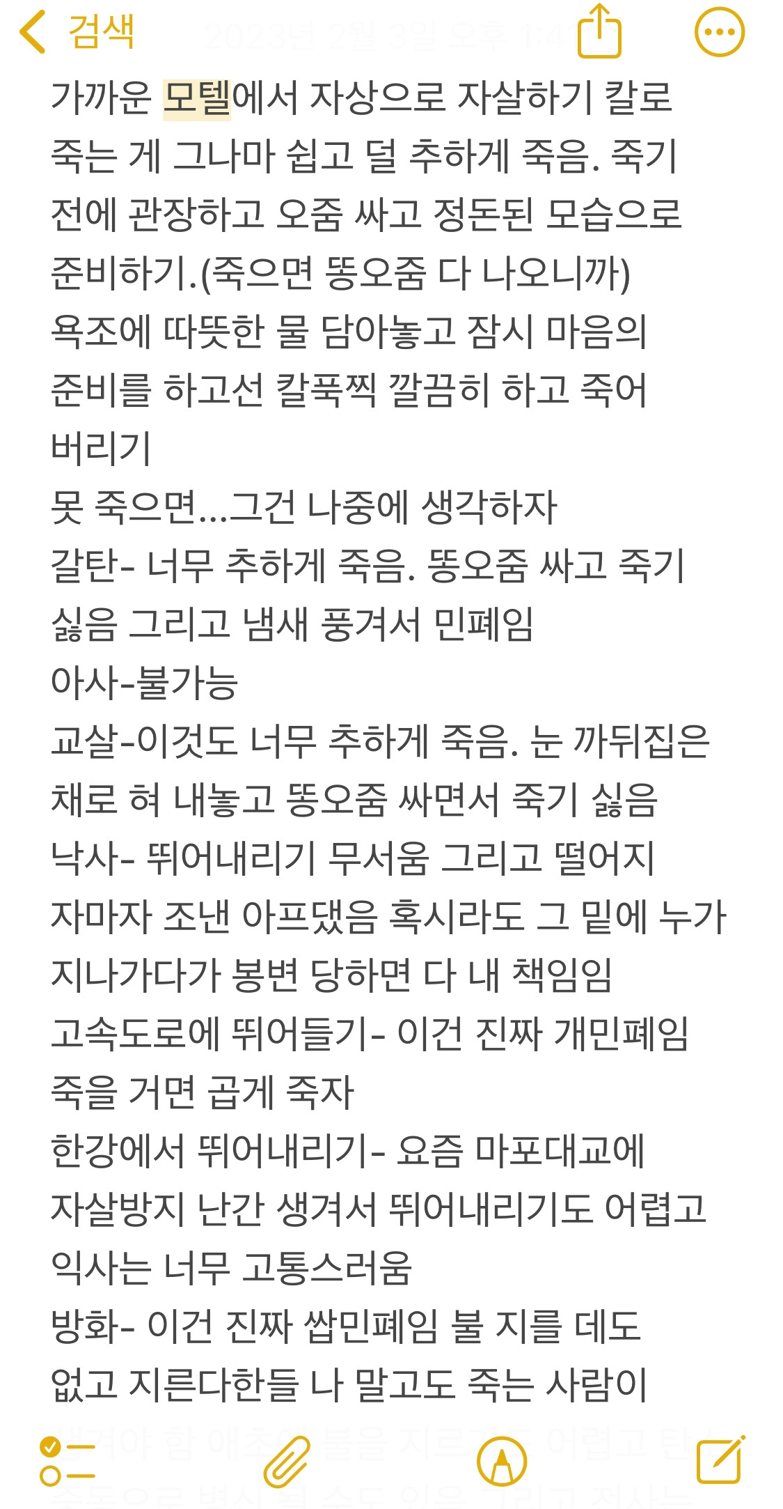 어떻게 하면 깔끔하게 죽을 수 있을지 메모장에 꼼꼼히 적어두기까지 했다.