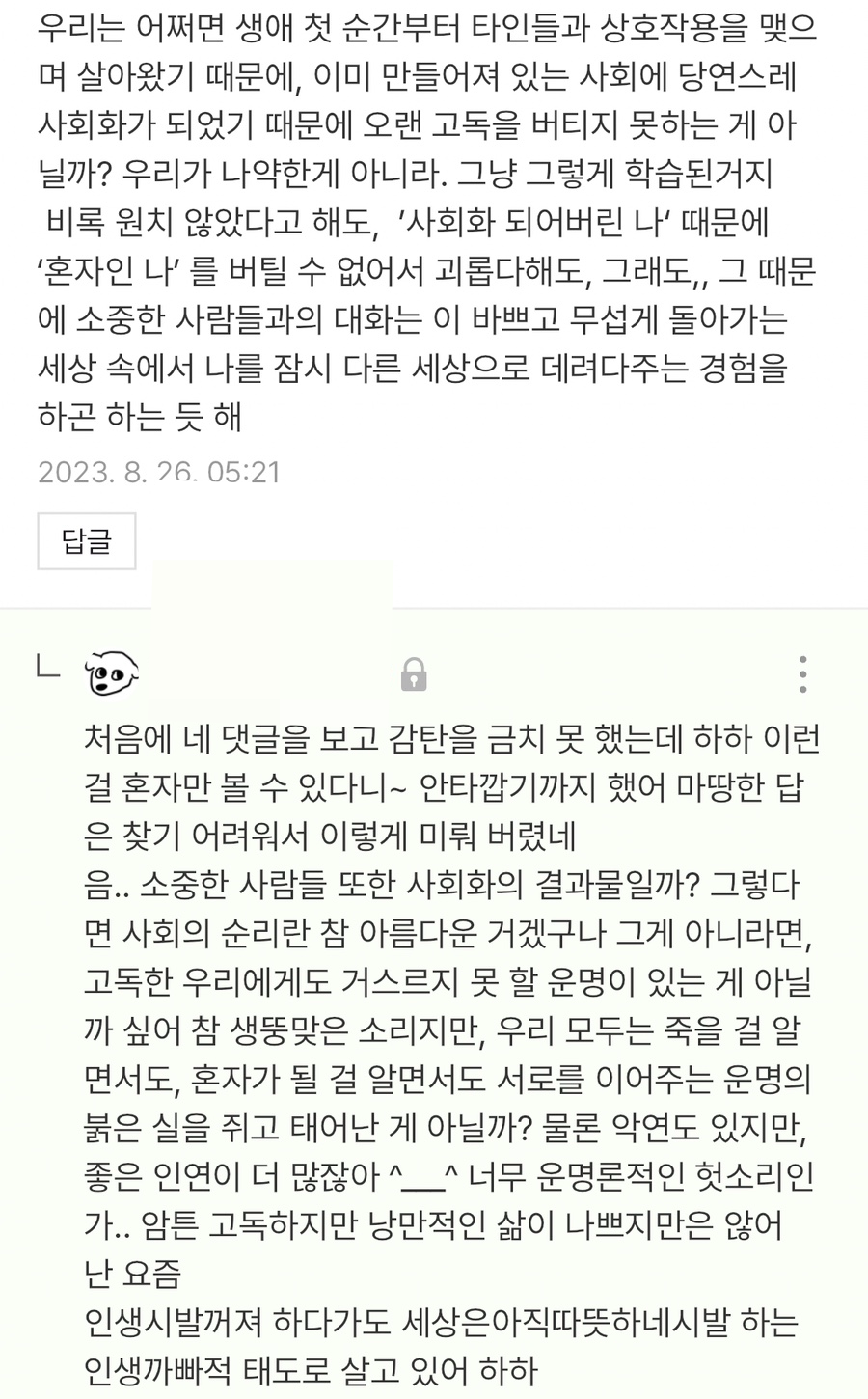 친구의 댓글을 저 혼자 보기 아까워서 올려 봅니다