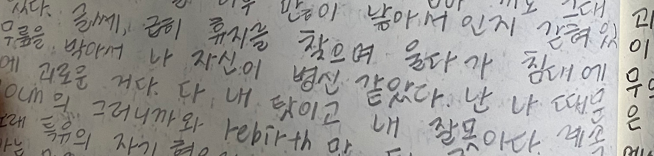 그리고 또? 하고 싶은 건 드럽게 없고 흥미따위 가는 거 하나도 없고 그저 죽고 싶고 그래 읽고 싶은 건 태산 같긴 해 쓰고 싶은 것도 태산이고 근데 손 놓은 지 꽤 됐어 언제쯤 다시 잡을지는 모르겠다 죽을 때까지 방치해둘지도