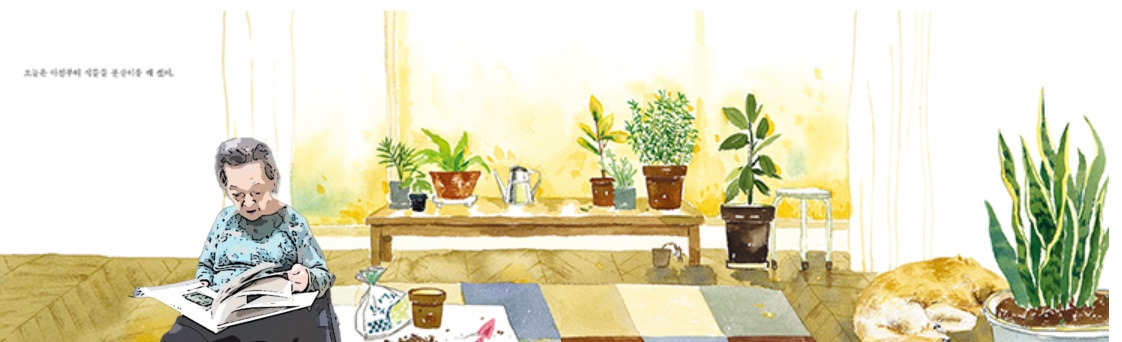 시니어그림책 <할머니의 정원>(백화연 저)은 어머니가 좋아하는 그림체였고 내용도 현재 어머니의 사정과 흡사해 골랐습니다.