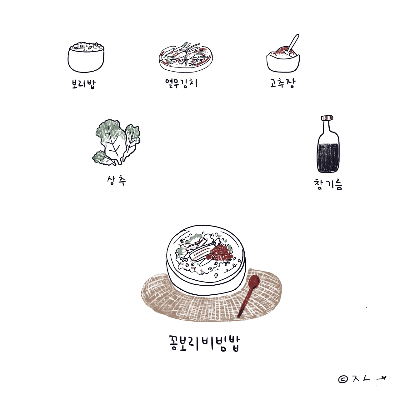 나는 그 말을 듣고 토도독 터지는 보리밥알의 식감을 느끼려 한 알 한 알 정성스럽게 먹어보았다.