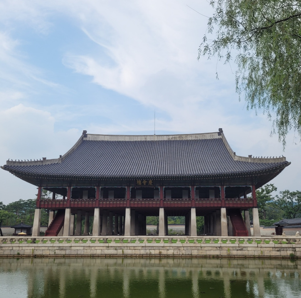 경복궁 경회루와 수양버들.