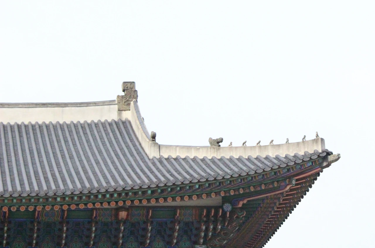 위 사진에서 기와 지붕 위로 하얗게 덧칠된 부분을 용마루라고 하는데*, 강녕전과 교태전 뿐 아니라 다른 궁궐에도 왕과 왕비의 침전에는 없는 경우가 대부분이다.