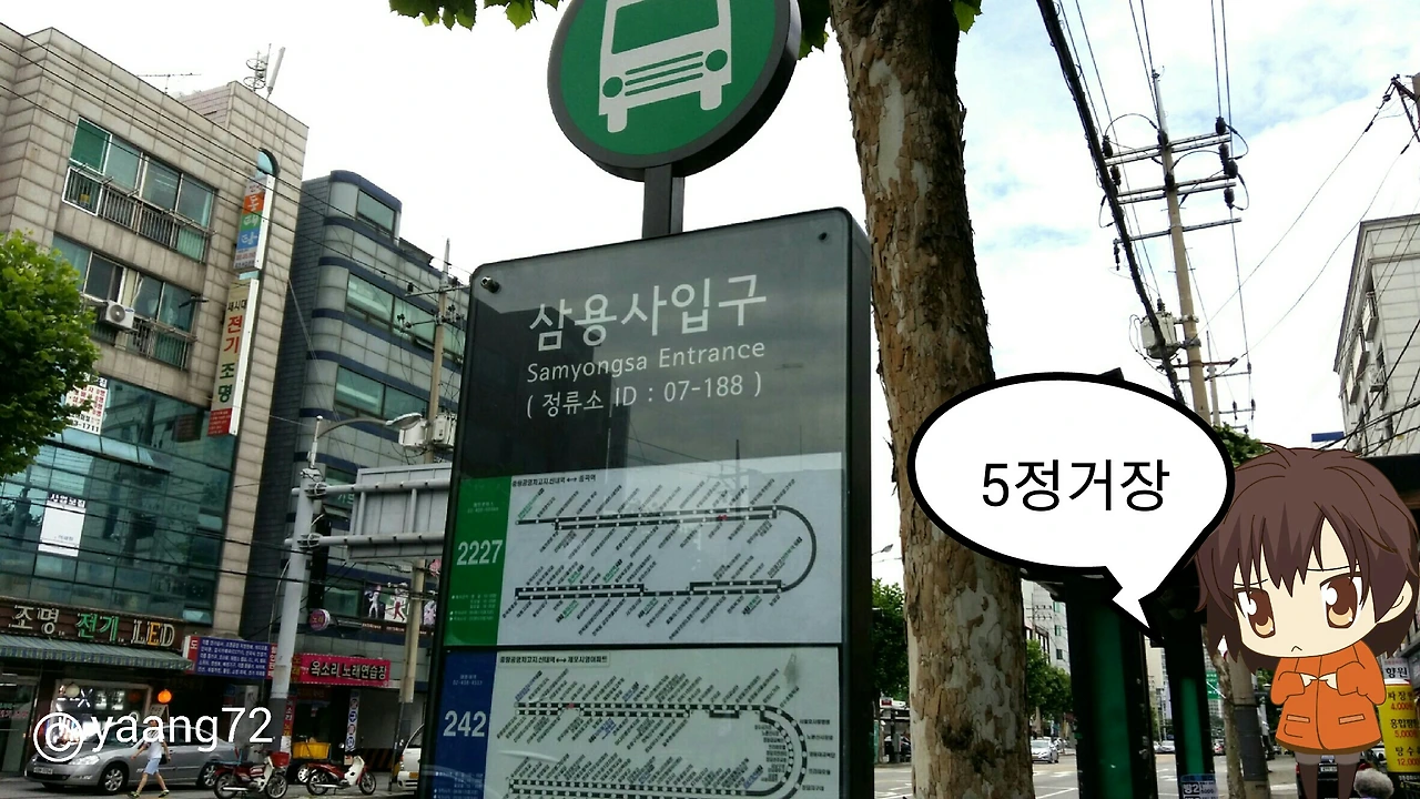 5정거장을 가서 삼용사입구에서