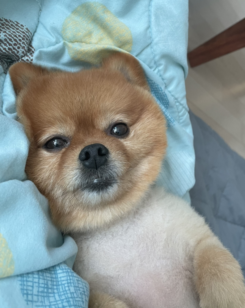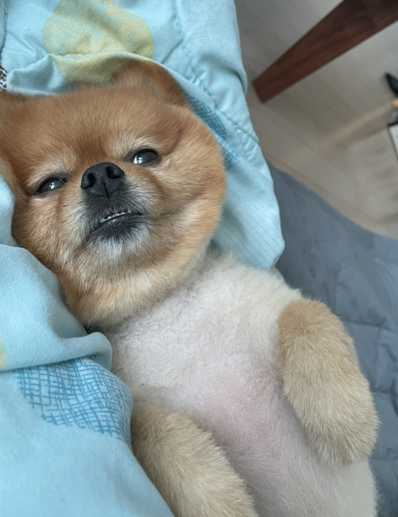 저기 이불 위에 식빵보다 더 보드라운 갈색 털 뭉치 하나가 나의 시선을 끌어당긴다.
