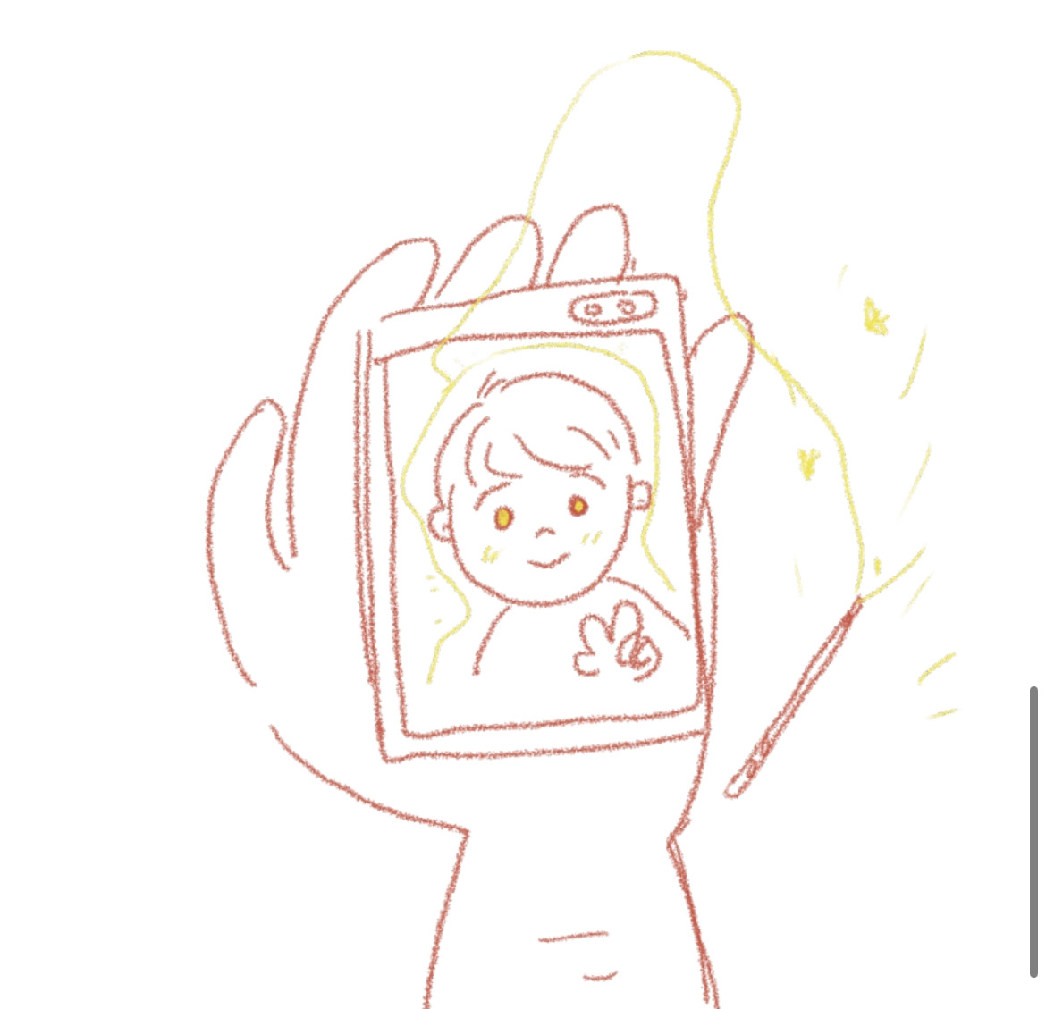 자화상을 그리는 주제였는데 나는 사진을 찍듯이 판에 박힌 얼굴을 그리는 친구들을 보고 똑같이 그리고 싶지 않아 색연필을 들고 마구마구 거칠게 그렸었다.