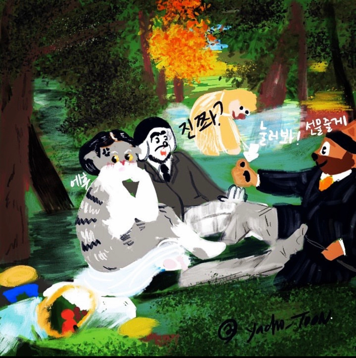하지만 아직은 이룰 수 없기에 혼자 톡 파원 25시 파리 편을 보면서 명화를 태블릿에 옮겨 그려 봅니다.
