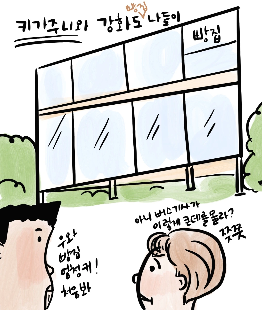 그가 매일 나에게 조르던 강화 투어를 하기 위해 집을 나섰다. 기분도 살짝 우울하기도 하고 드라이브하자고 하는 그의 제안에 나는 선뜻 그래 하고 따라나서게 된 것이었다. 물론 여러분도 예상했다시피 차 안에서 신나게 떠들어대는 키가 주니 때문에 귀에 피가 나기 시작했다.
