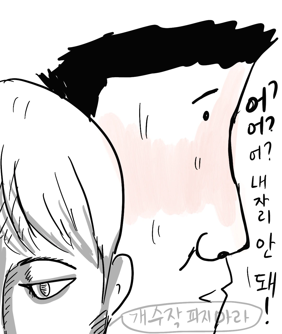 쉴세 없이 터는 그의 입을 도저히 나는 참다못해 휴지를 접어서 그의 입에 꽂아주었다.