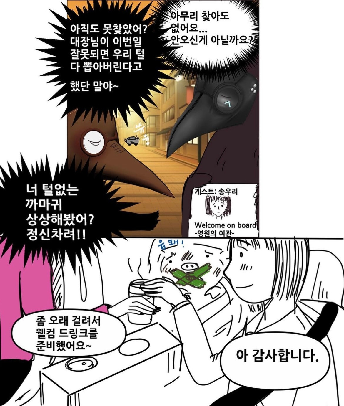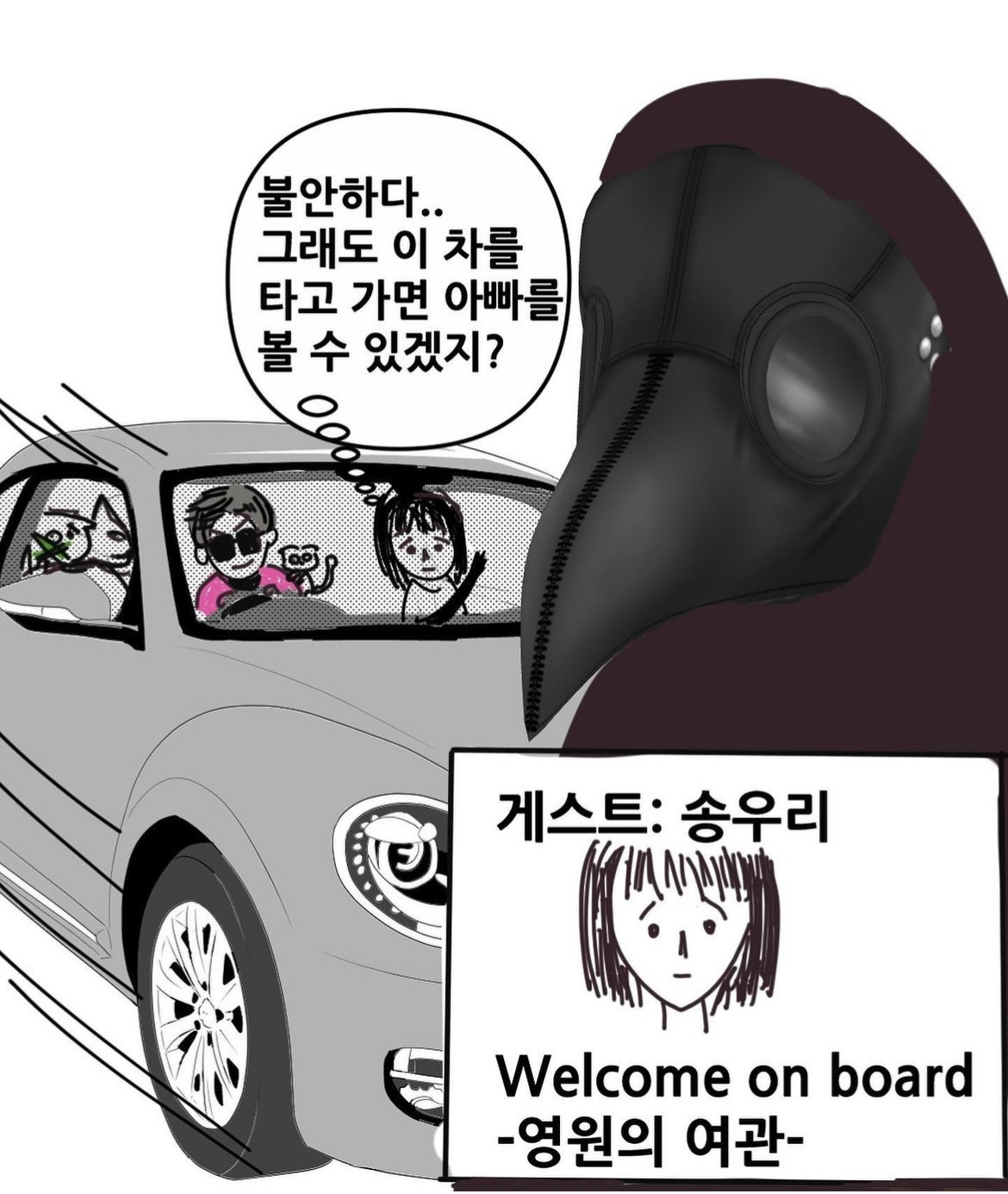 “송우리 씨 그럼 잠깐 눈 붙여요 눈 깜짝 사이에 도착하게 될 테니까 말이에요 하하하하하 “