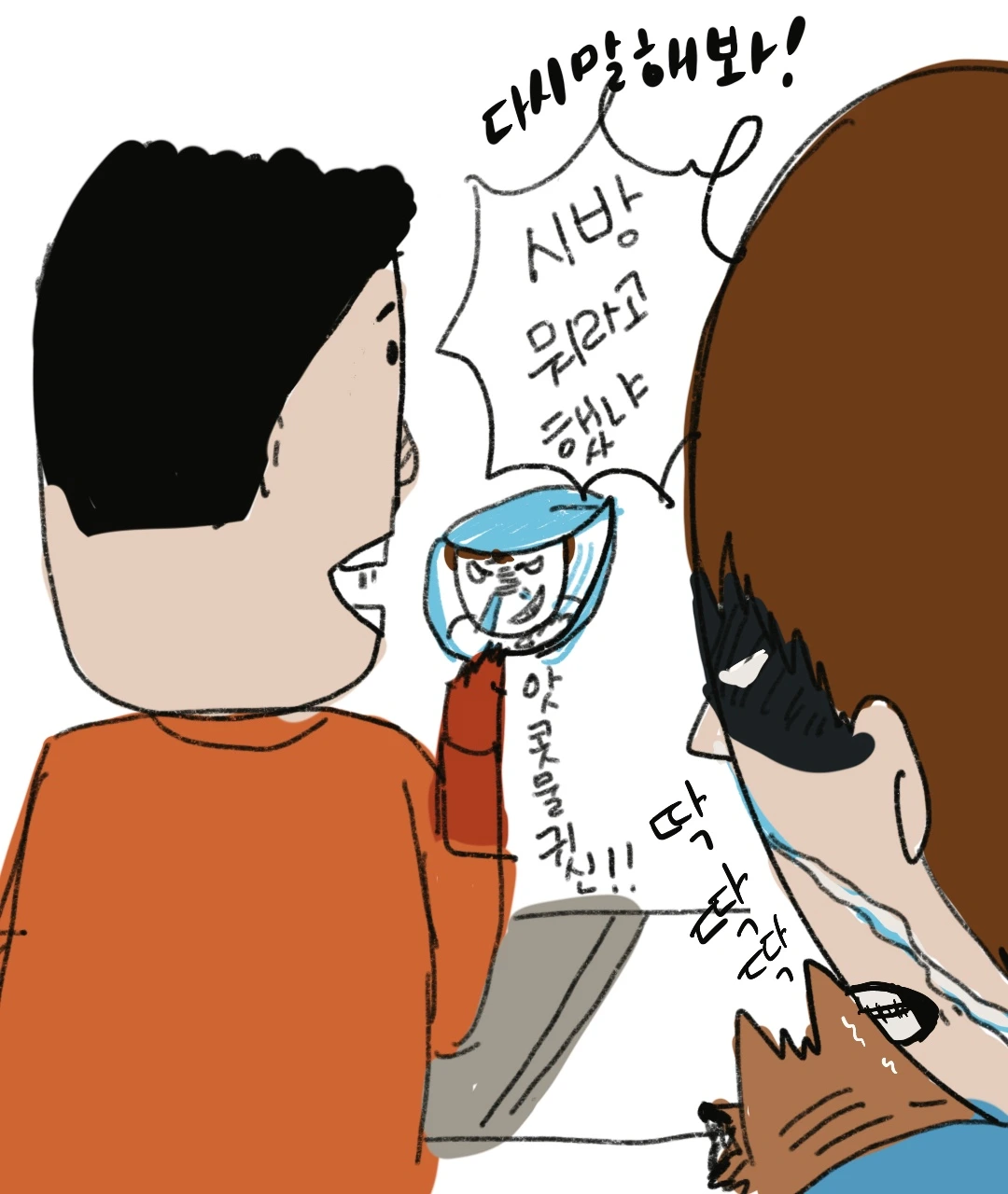 나 지금 흘리는 거 콧물 아니야 눈물이야