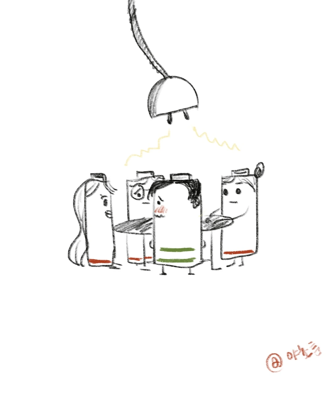 만약 사람들도 핸드폰처럼 방전된 에너지가 표시되어 충전할 수 있다면 어떻게 될까? 방전된 상태로 돌아다니던 사람들이 표시된 잔여 배터리 퍼센트를 보며 각자 자신의 에너지를 충전하기 위해 자신에게 맞는 충전 방법을 찾게 되지 않을까?
