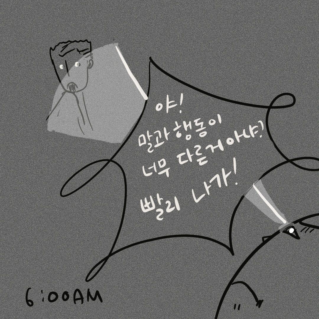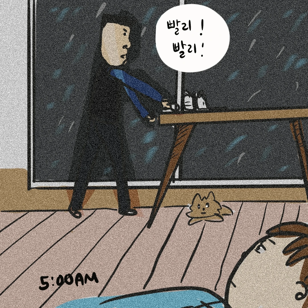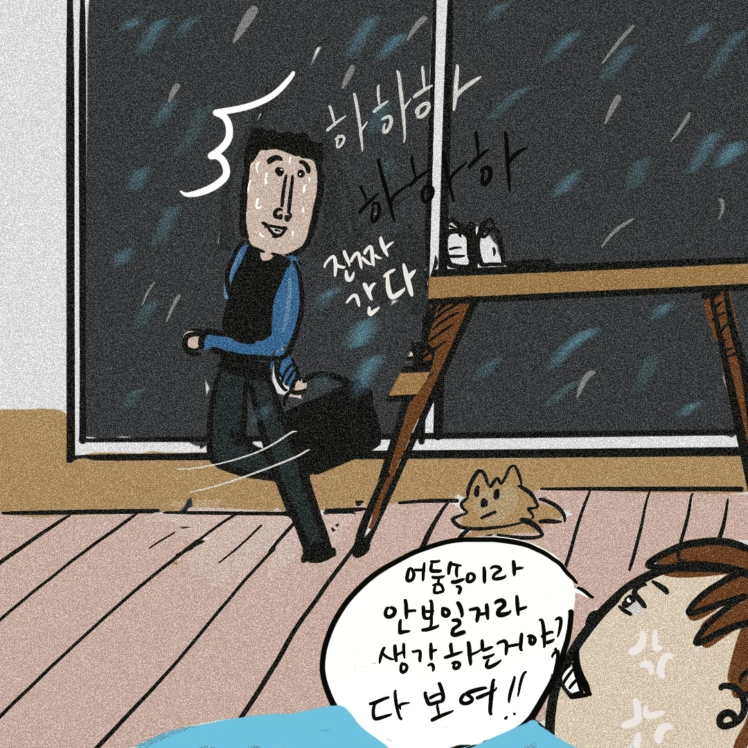 이제는 어두운 곳에서는 자신이 왕이 된다고 판단 한 건지 출근할 때도 굳이 불을 켜지 않고 마치 좀도둑처럼 거실을 활보하고 다니곤 했다.