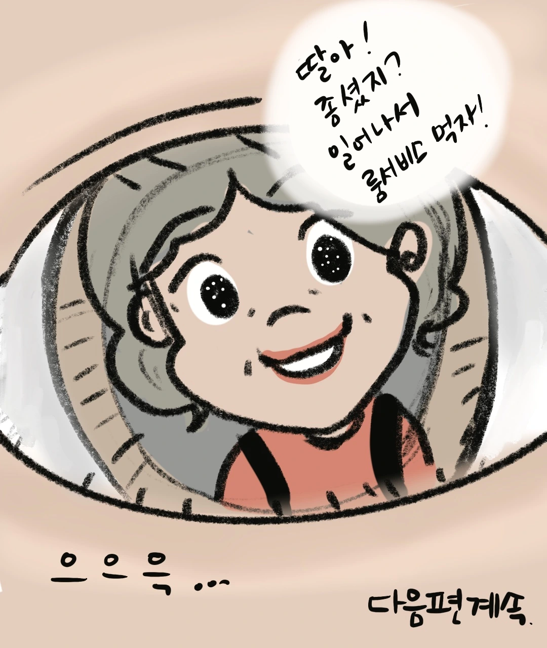 "딸아 일어났니? 나가야지!"