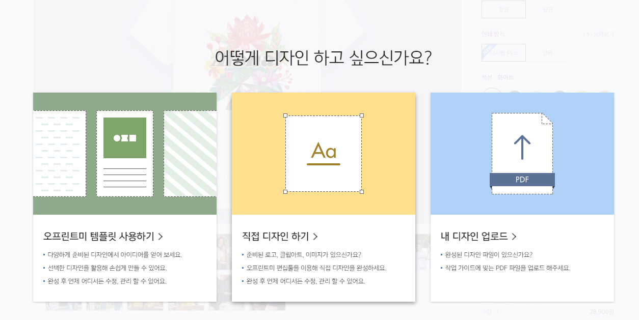 만약, 디자인한 그림이 있다면 -> 직접 디자인하기 선택