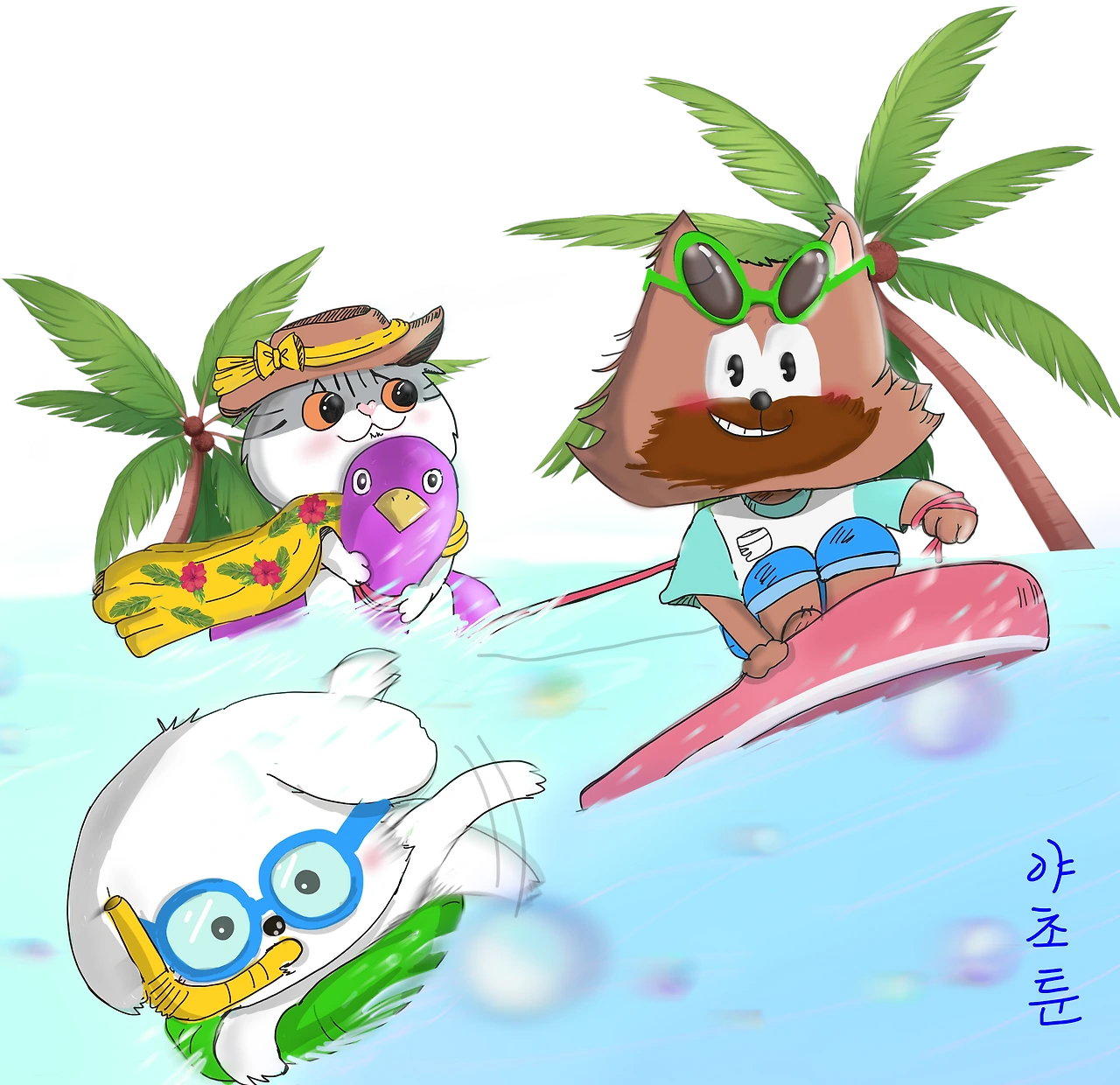 "그래.. 여름이니까 시~원하게 비키니 차림의 야초와 야솔이 그리고 가실이를 그려보는 거야"