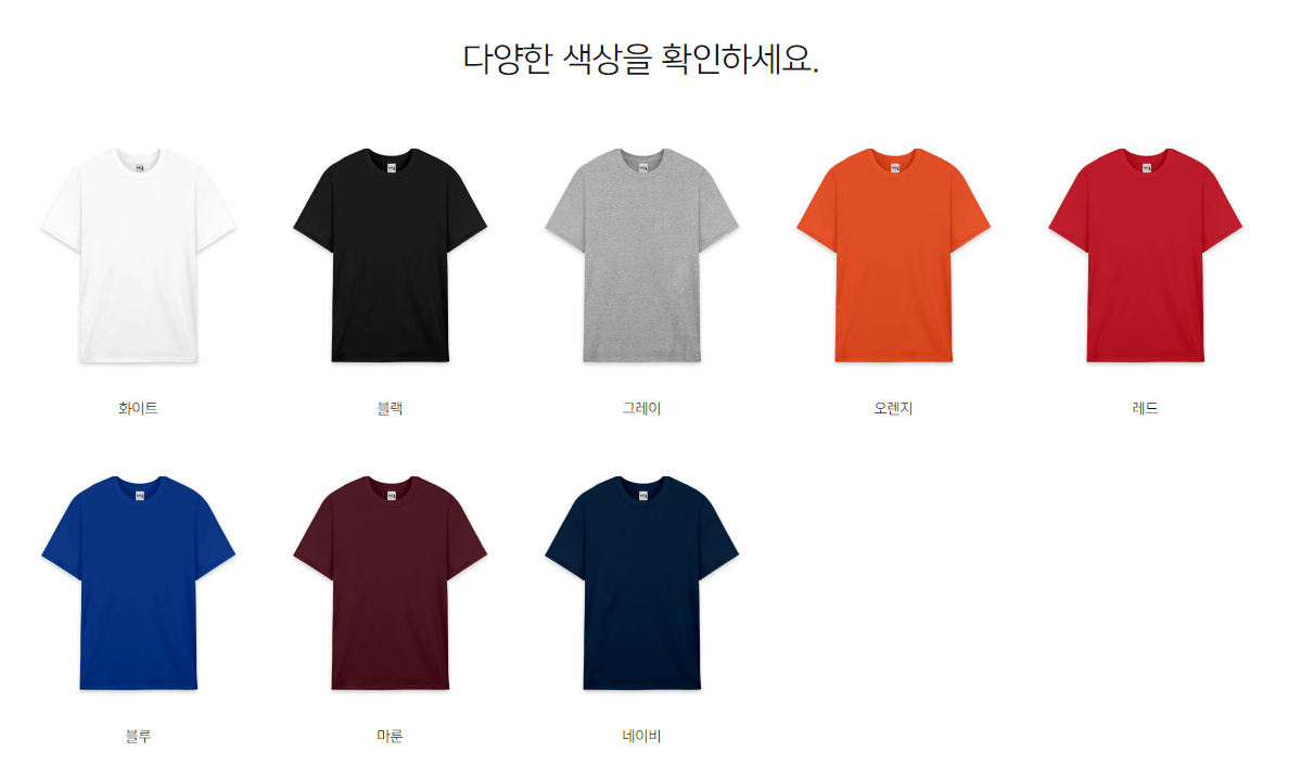 티셔츠 색은 아래와 같이 다채롭게 준비하려고 합니다.