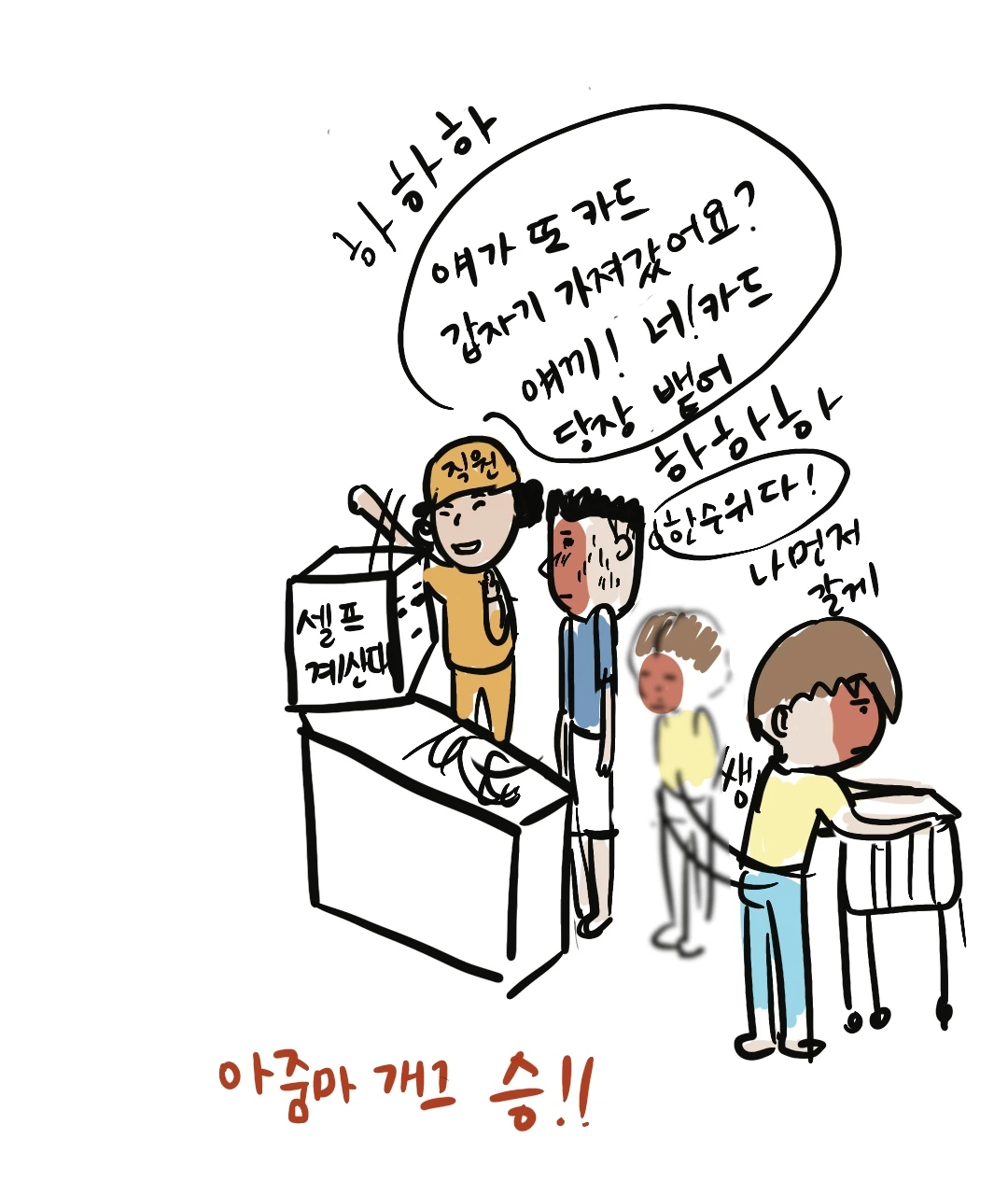 혹시 그와 개그코드가 맞으시다면 그냥 그이를 여기다 놓고 가도 될까요? 바퀴는 계속 굴러가지 않으면 녹슬어서 카트 끄는 저는 이만… 총총
