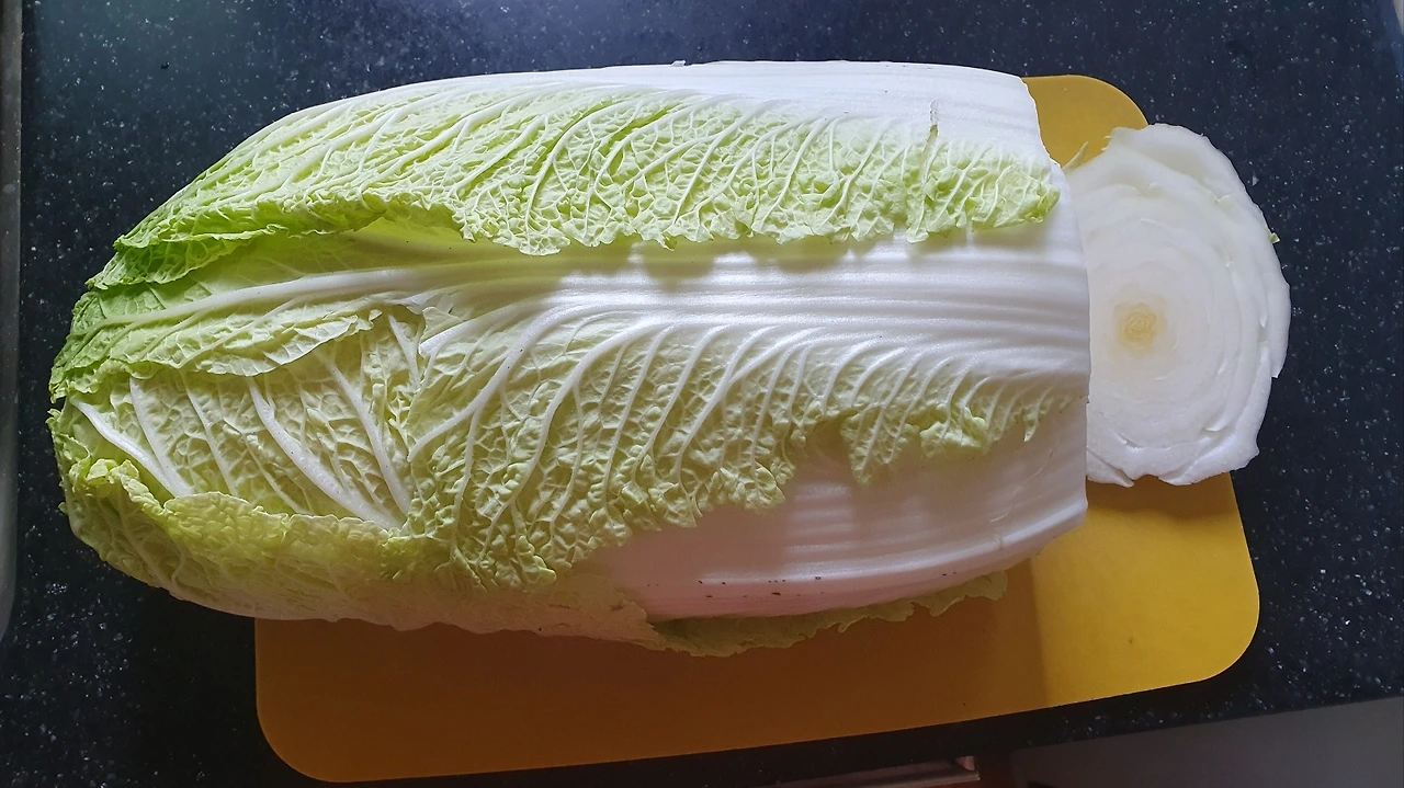 1. 알배기 배추 한 포기는 먹기 좋은 크기로 어슷 썰고