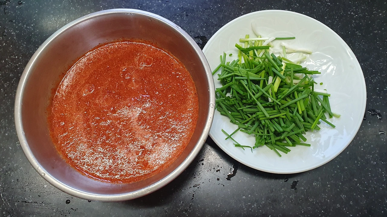 5. 쪽파 반 줌 썰어 양념 넣고 살살 버무려주면 끝