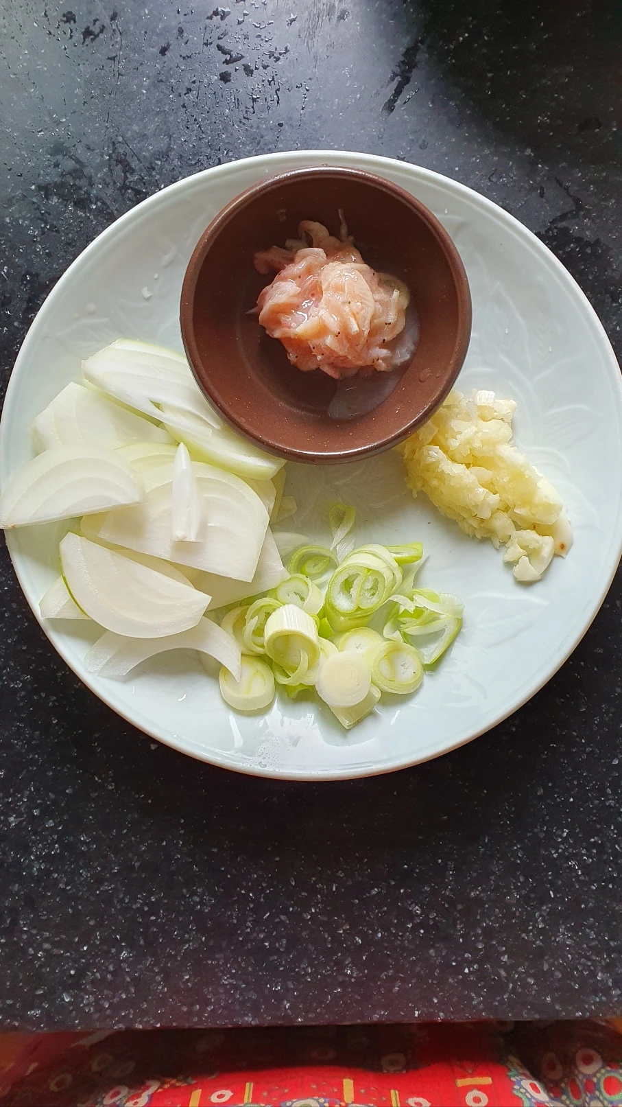 2. 대파 반 개, 양파 반 개, 다진 마늘 반 스푼을 팬에 기름 한 스푼 둘러~