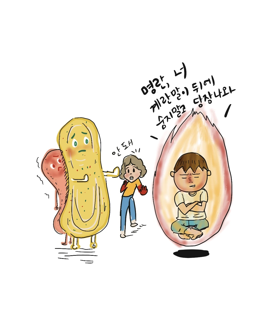 “어머니 어머니, 다른 반찬은 문제가 없는데 달걀찜 위에 주황빛 도는 미확인 물질인 저건 뭔가요?"
