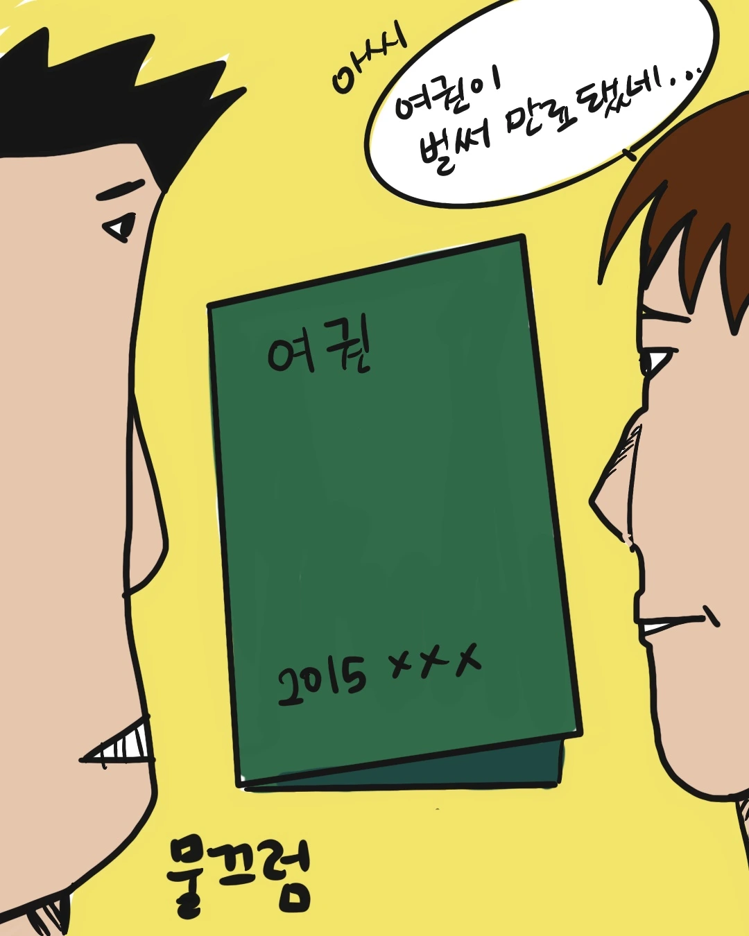 그 모습을 뒤에서 보고 있던 키가주니는 음흉하게 웃으며 자기도 여권을 바꿔야겠다고 말하는 게 아닌가? 너는 여권 언제까진데?라고 묻자 자신의 여권을 말없이 들이밀었다. 2025년… 아니 아직 기간이 남았는데..라는 나의 말이 끝나기도 전에 내가 만들면 자신도 만들어야 한다며 사전 신청 버튼을 누르고 사라졌다.