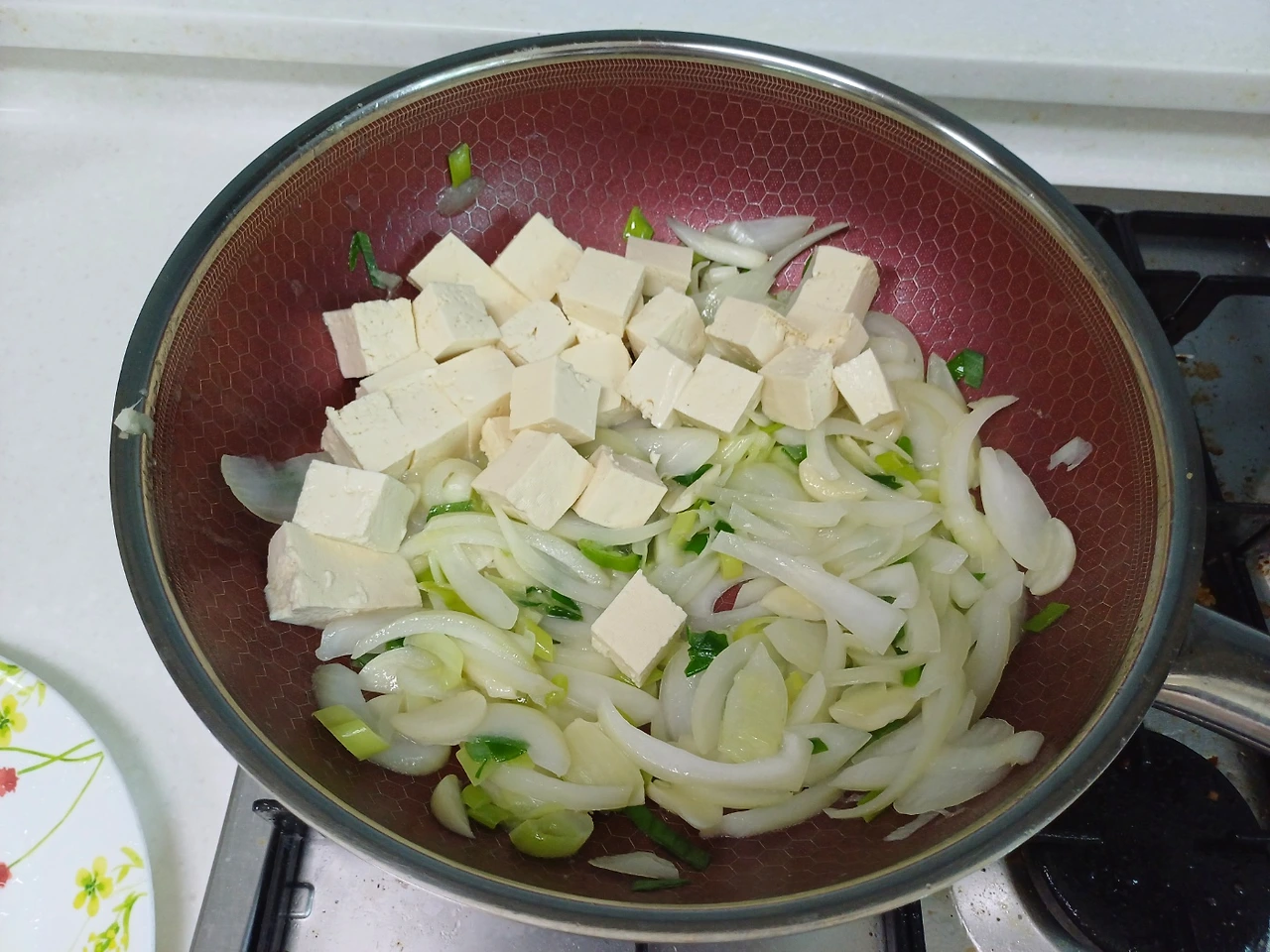 두부는 깍둑 썰어 물기를 빼두고