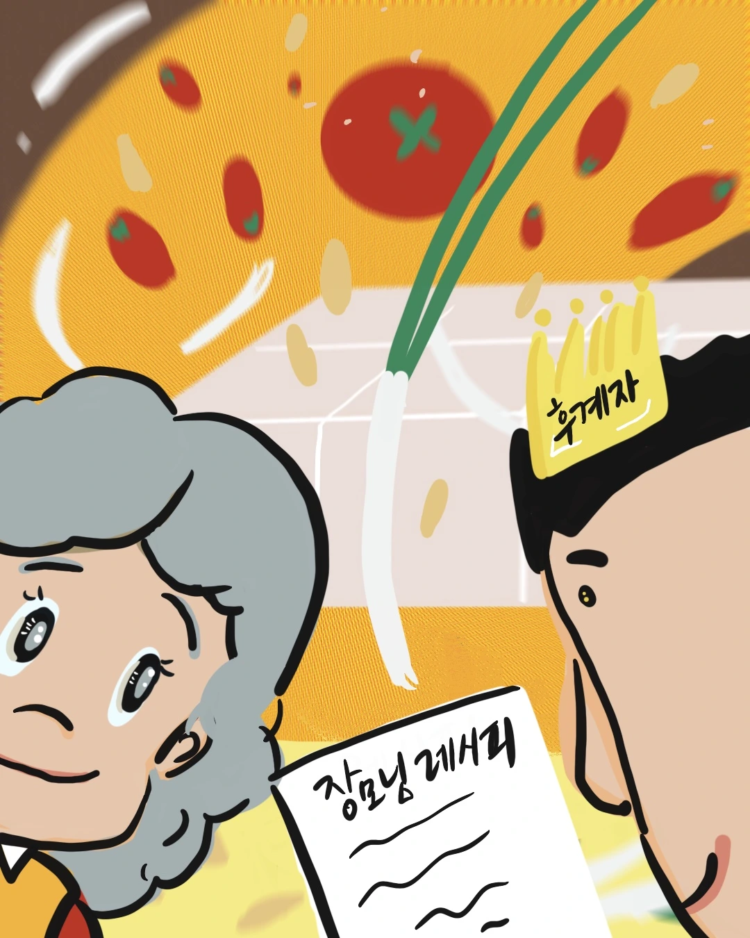 순간 허를 찔린 당황한 얼굴의 땀범벅 후계자님은 장모님이 보내준 다른 레시피가 있다며 황급히 찾기 시작했다.
