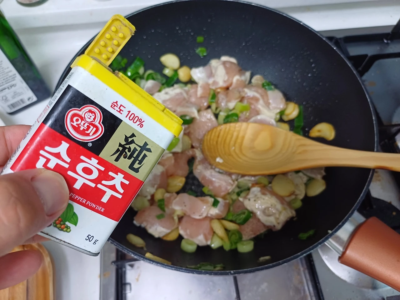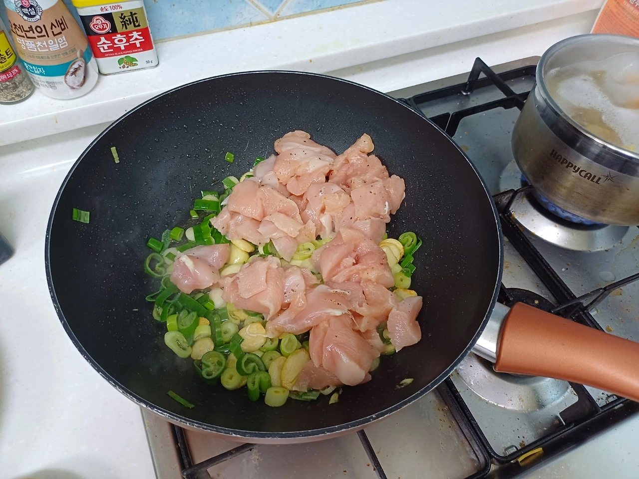 소금 한 꼬집 넣고 볶다가
