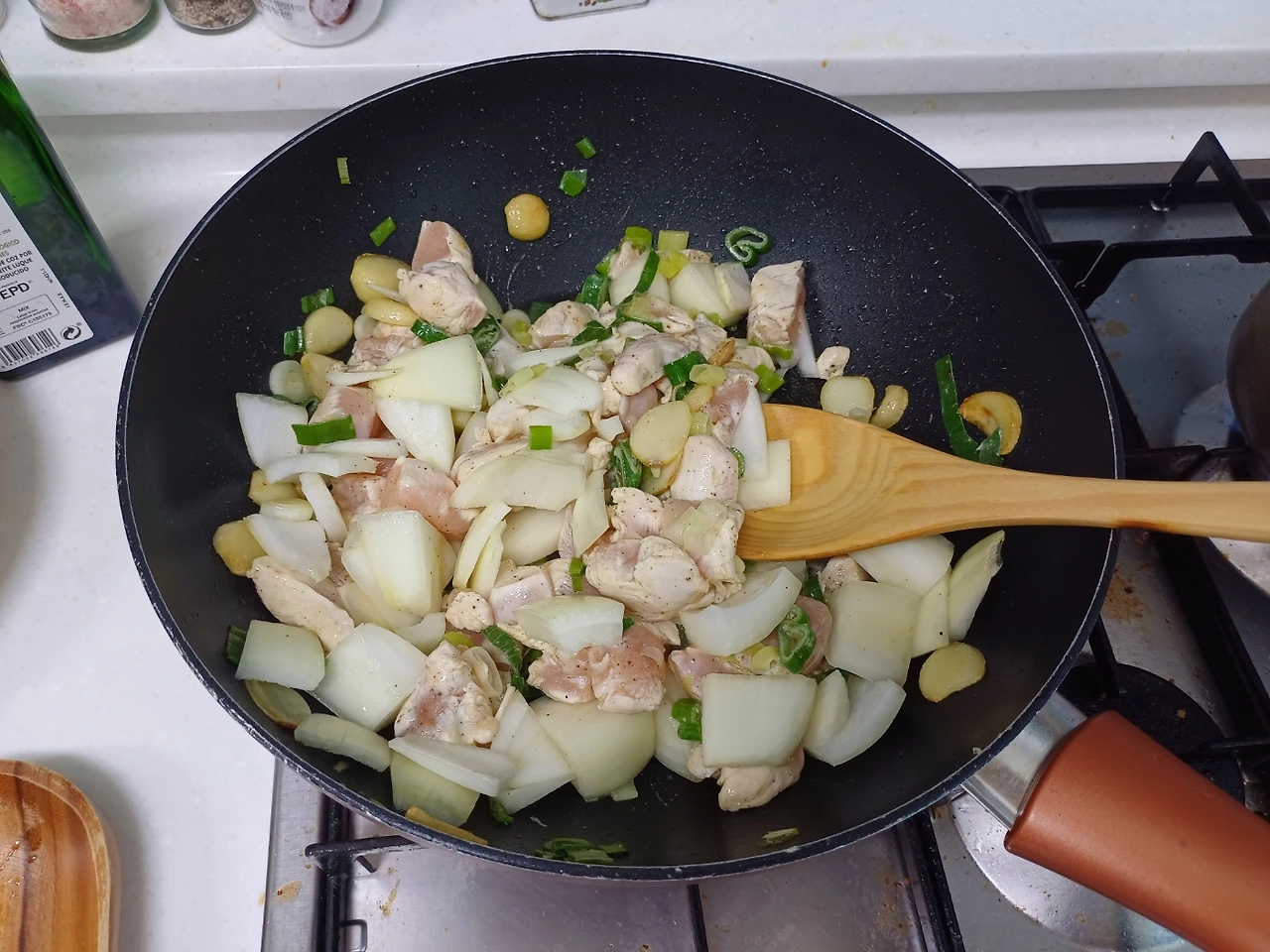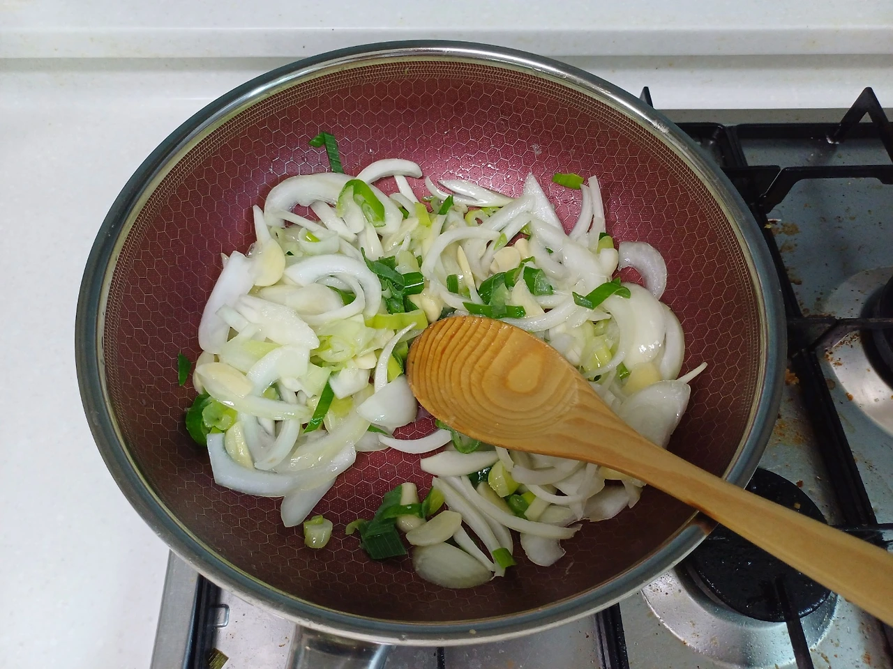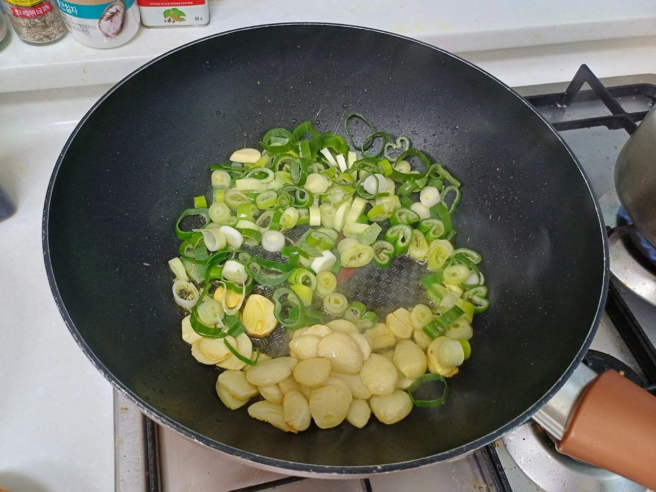 팬에 마늘 대파 양파