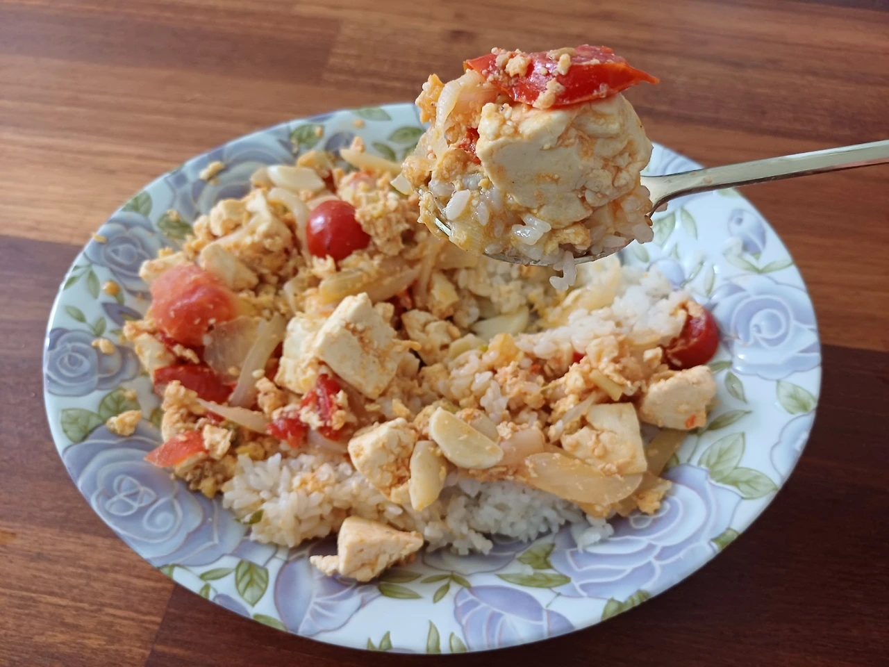 마늘 +파 + 토마토 두부 덮밥