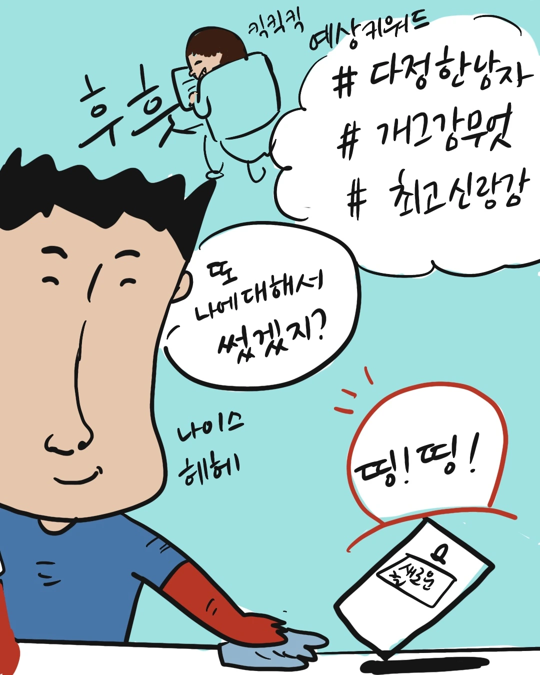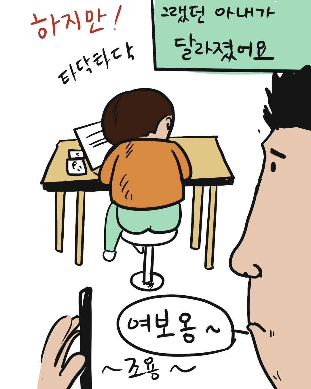 이유를 모르고 당하는 사진테러에 분노의 주먹이 불끈 끓어올랐지만, 그는 스마트하게도 내 옆에 없었다.