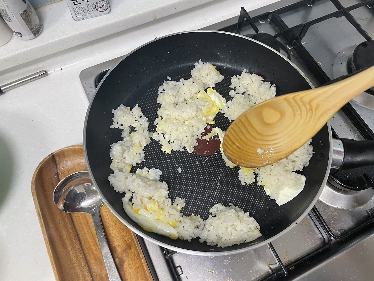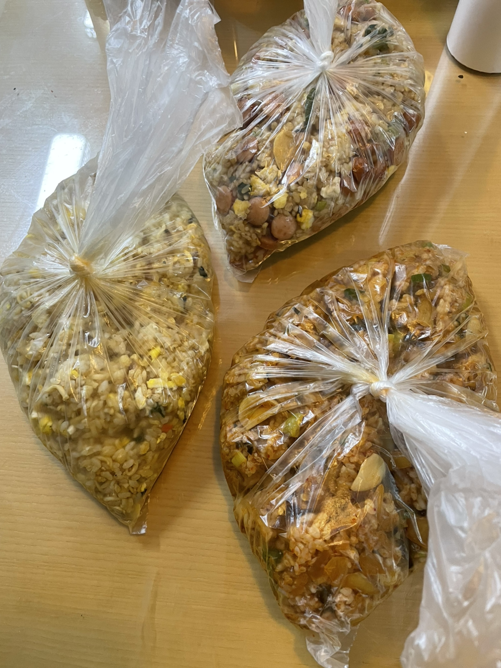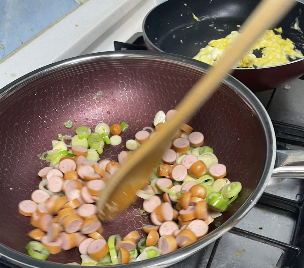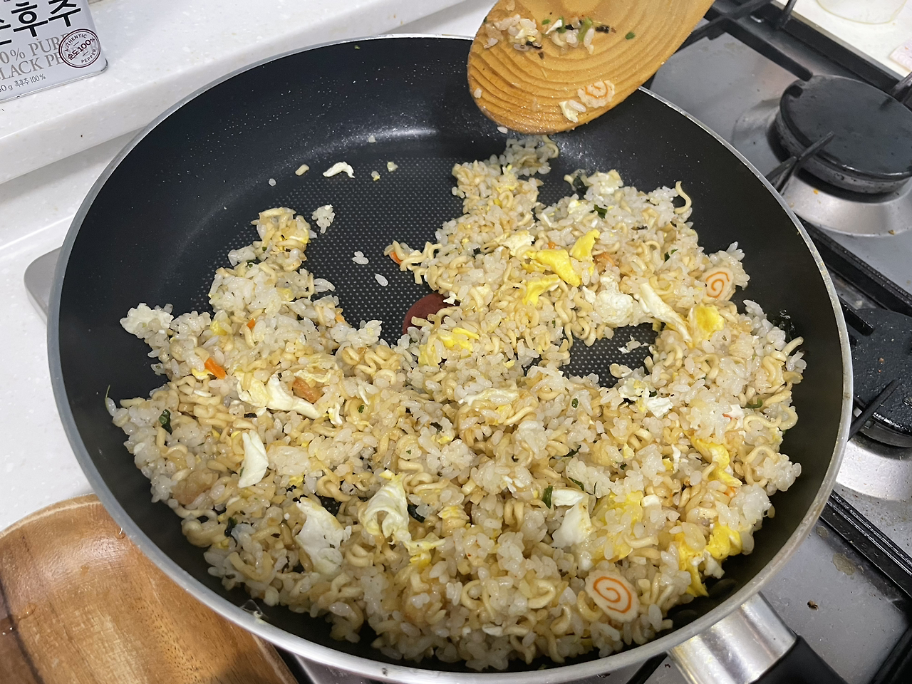 그리고 어느덧 밥 버거를 먹어도 배가 부르지 않게 된남편과 나는 추가로 볶음밥을 만들어 먹기 시작했다. 보통의 볶음밥을 만들 때면 재료 손질하다가 하루가 다 가지만, 이마저도 귀찮은 우리는 일단 한 번에 왕창 만들어 놓고 얼려두었다가 냉동밥 먹는 것처럼 해동해서 먹었고, 하면 할수록 노하우가 생겨 나름 맛있는 굴소스 맛을 유지할 수 있게 되었다.