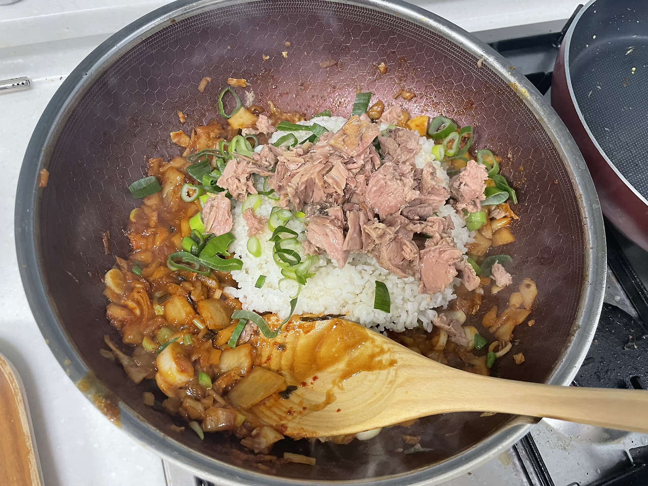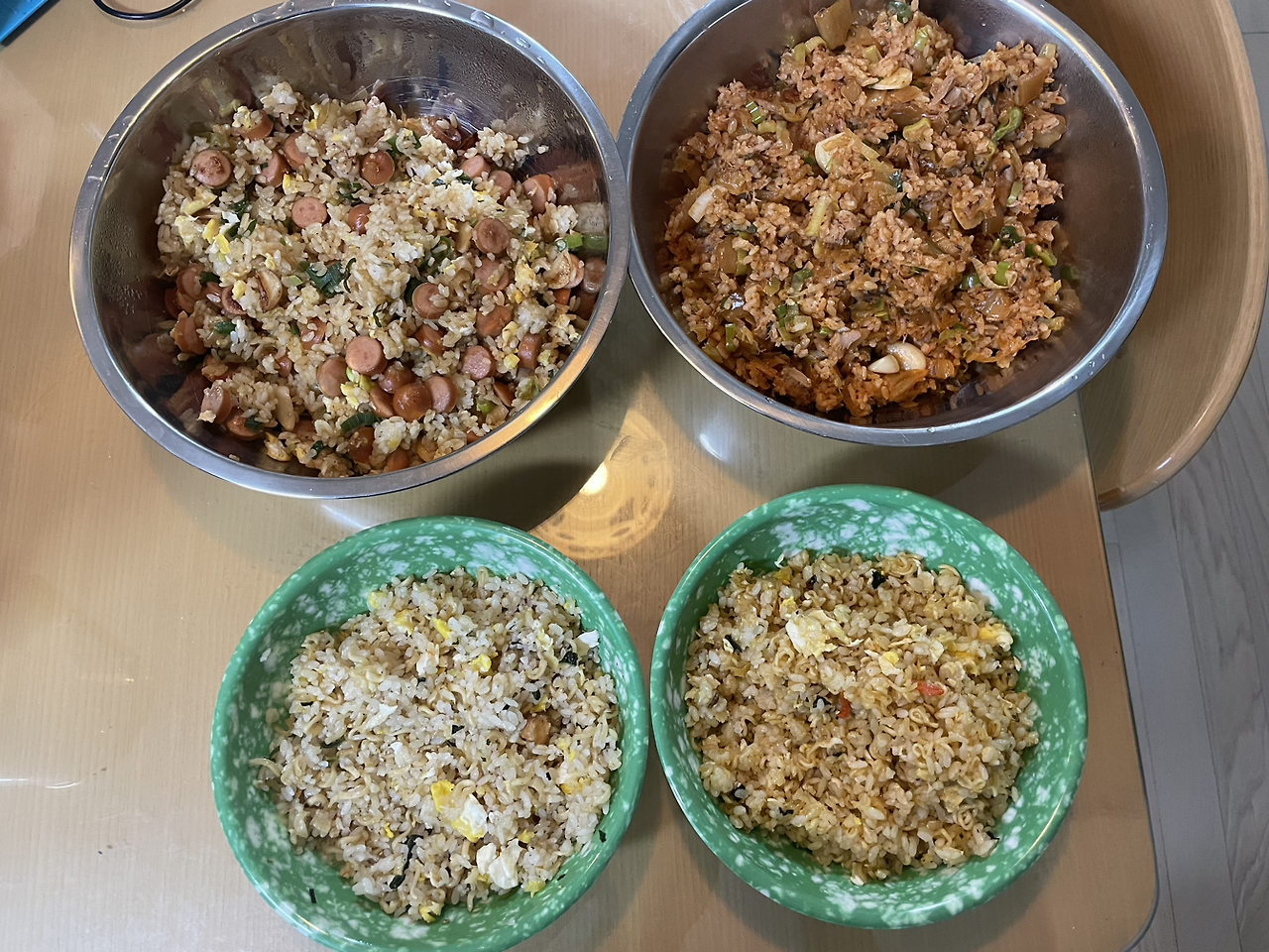 자신감이 생겨서였을까? 이번엔 그동안 엄마가 해준 음식에 대한 보답으로 김치 참치 볶음밥, 햄 많이 마니 볶음밥, 라밥 나밥 볶음밥을 만들어 친정에 가기로 했다. 남편이 요리를 나는 재료손질을 담당했다.