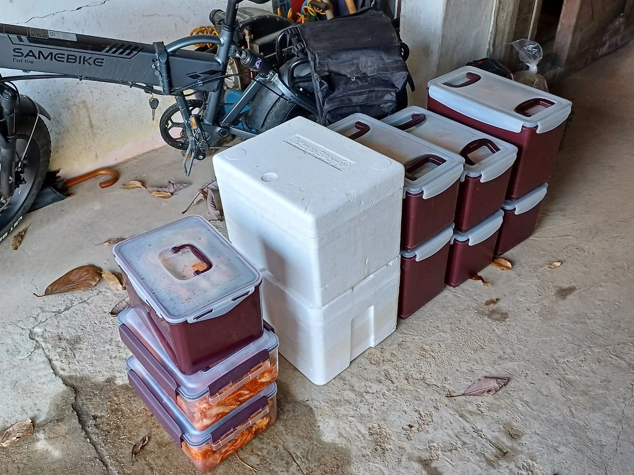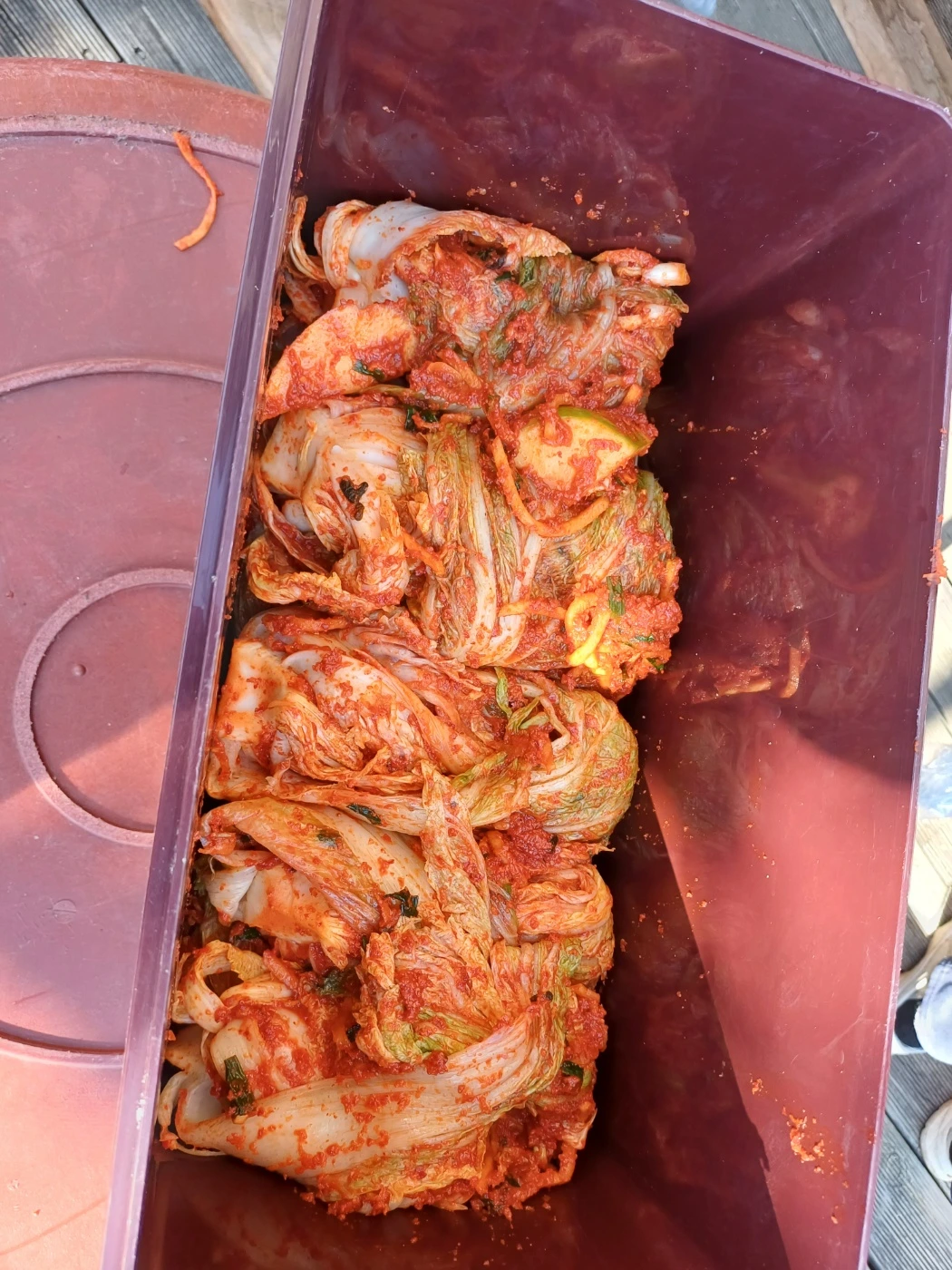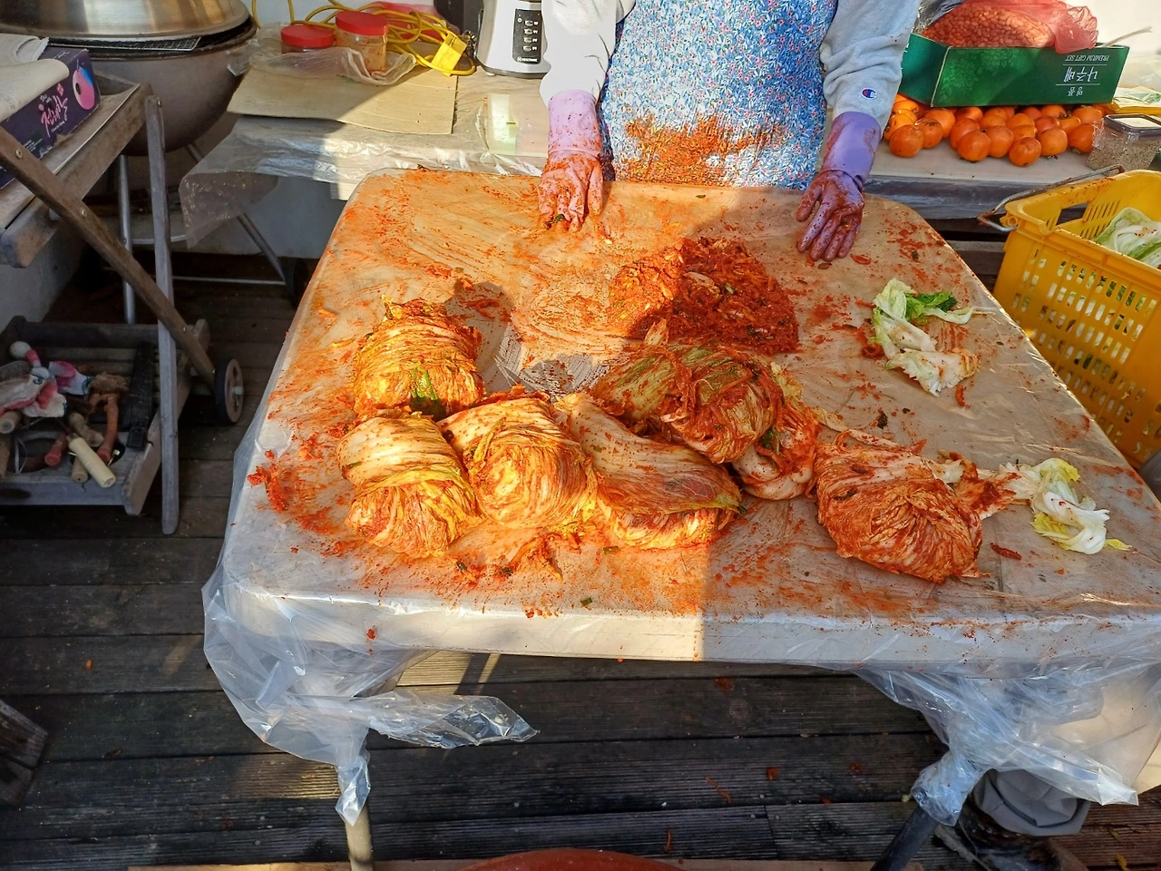 그렇게 아빠에게 어렵게 배운 교육으로 나는 나머지 배추에 양념 묻히고. 남편은 양념을 가득 바른 김장을 옮기며 서프라이즈 한 첫 김장을 마무리했다.