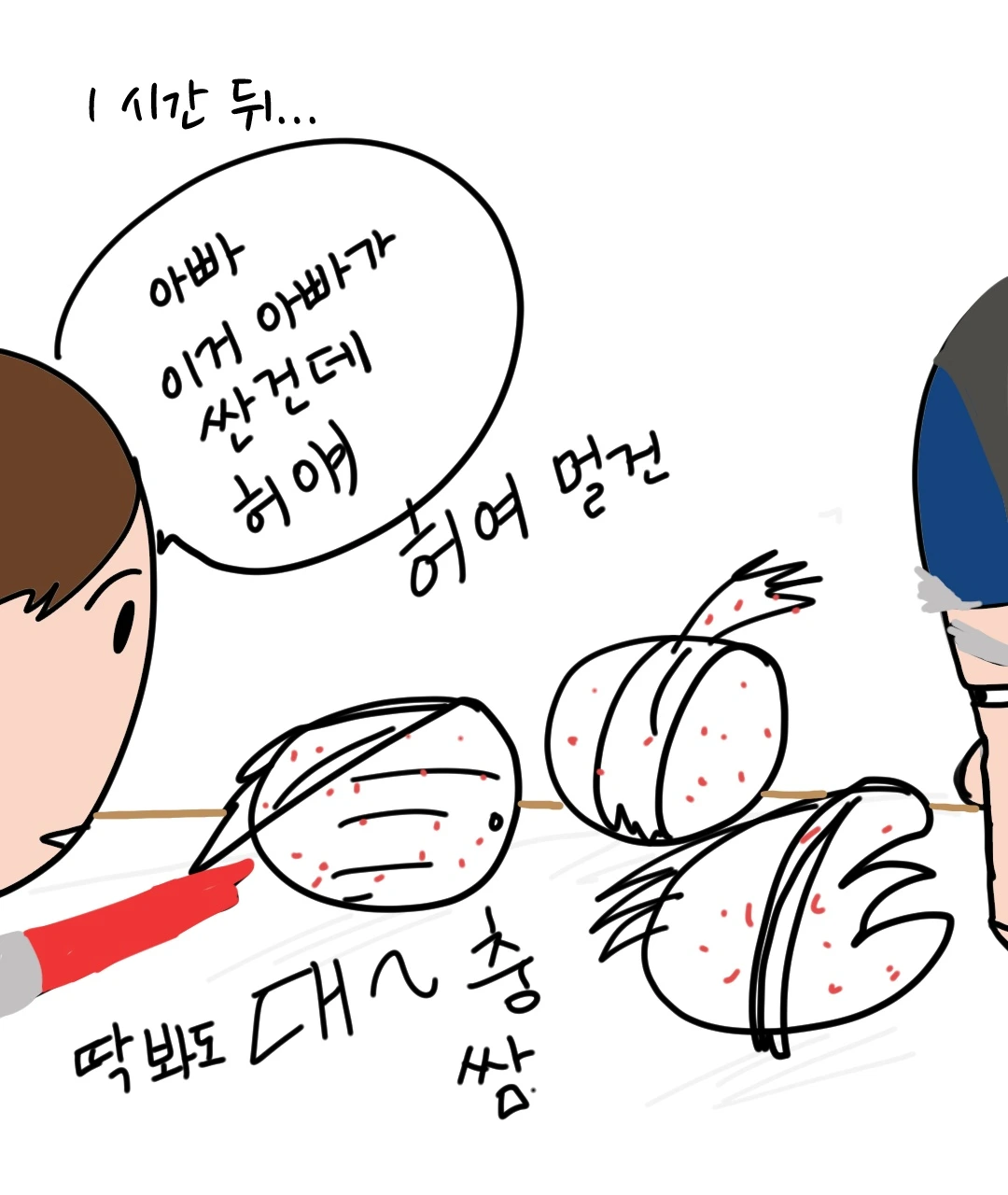 뚜뚜뚜르르 뚜뚜뚜르르 마치 수술대 마지막에 등장하는 의사처럼 무장한 아빠가 등장해 비장하게 엄마에게 외쳤다