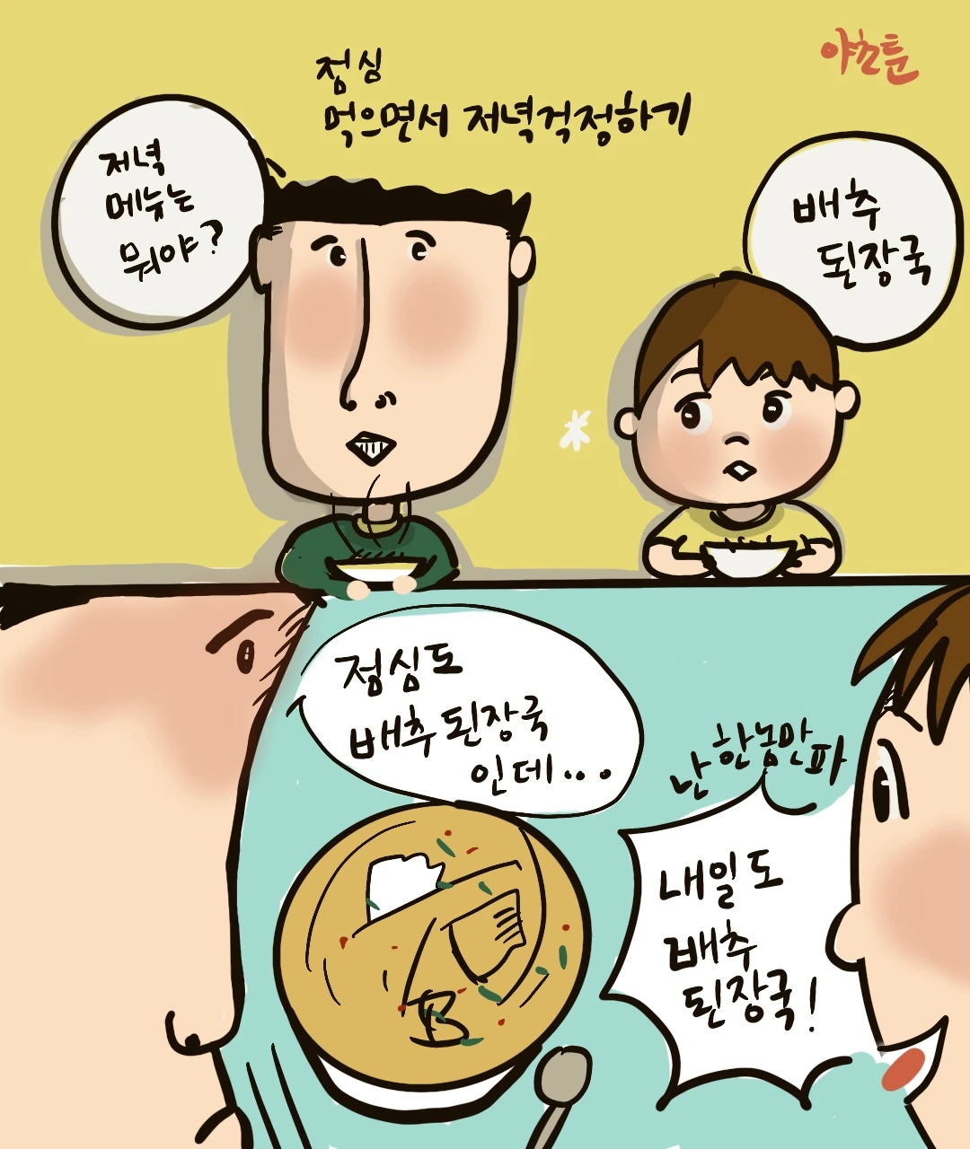 “이상하게 어제도 오늘도 같은 걸 먹는 기분이네”
