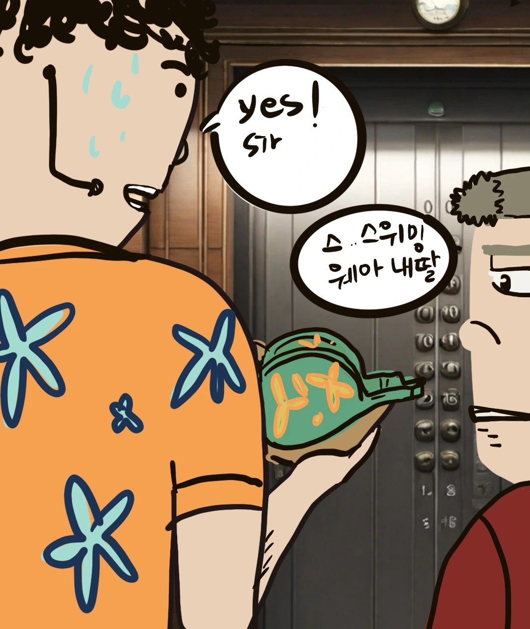 “스위밍웨아 파덜로 다 끝나부렀어! 영어 까이껏!”