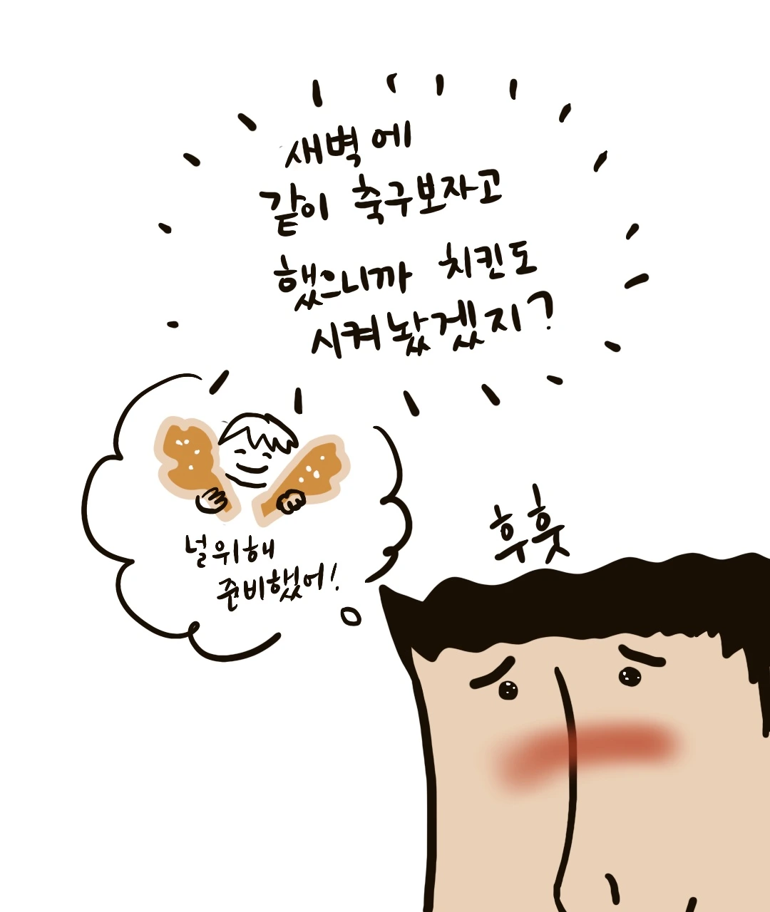 새벽부터 축구를 하니 늦게 끝나는 남편을 밤새 기다리겠다고 엄포를 놨다.
