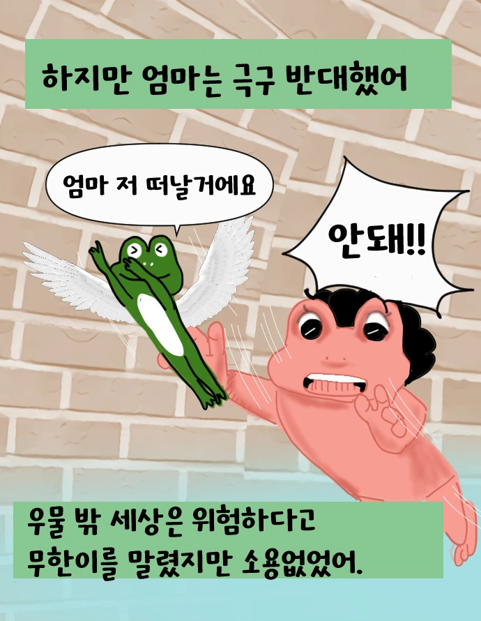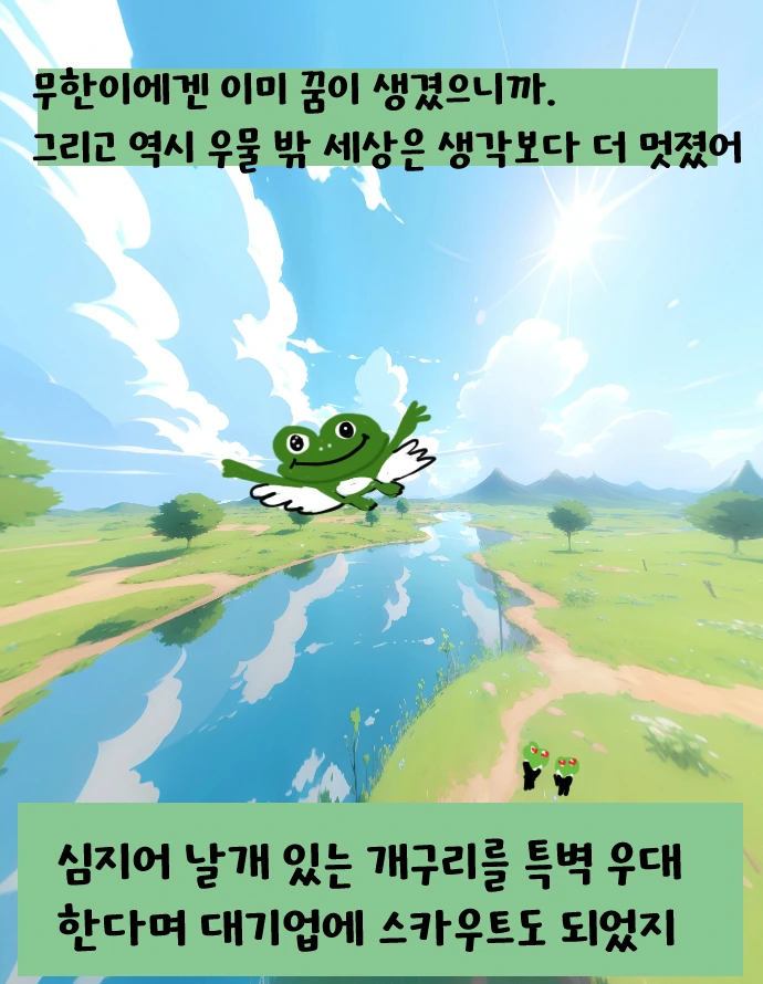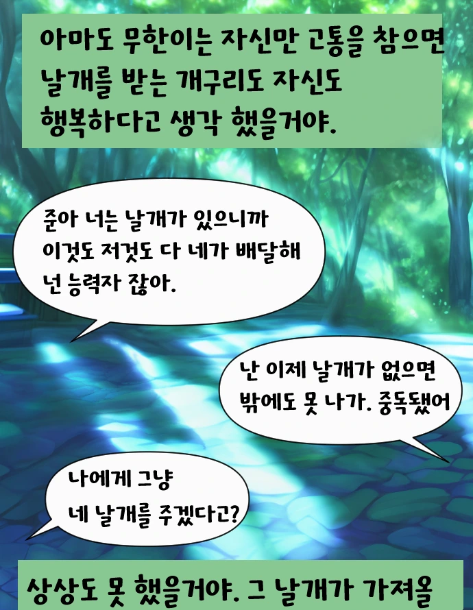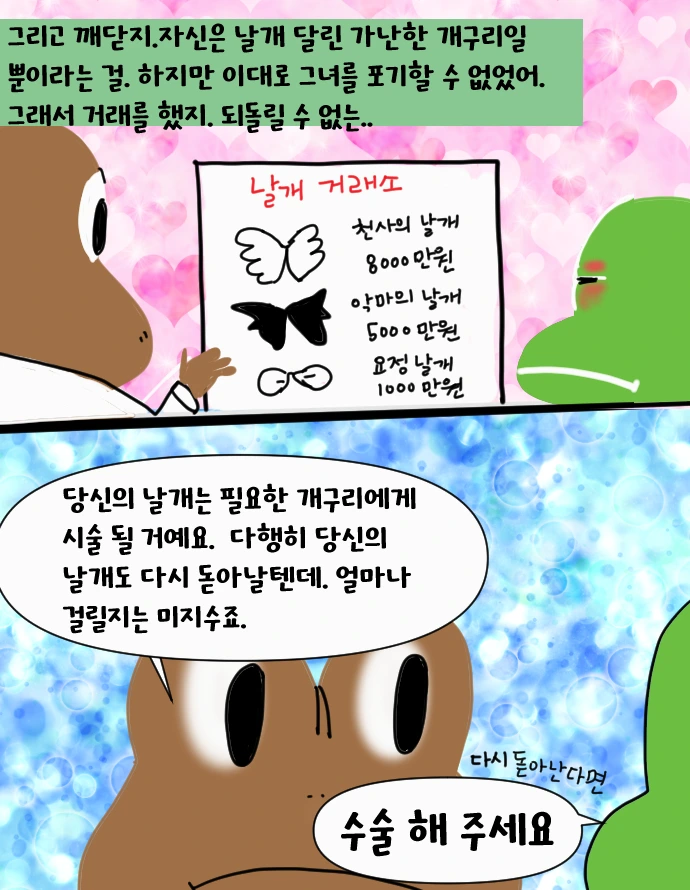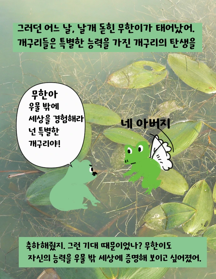 개구리였어요. 날개가 없었으면 행복했을 텐데”