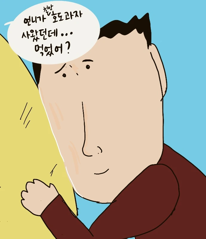 먹은 과자 종이를 다시 접어 아내를 속일 생각을 하며 즐거웠을 남편을 상상하니 힘이 더 불끈 솟았다.