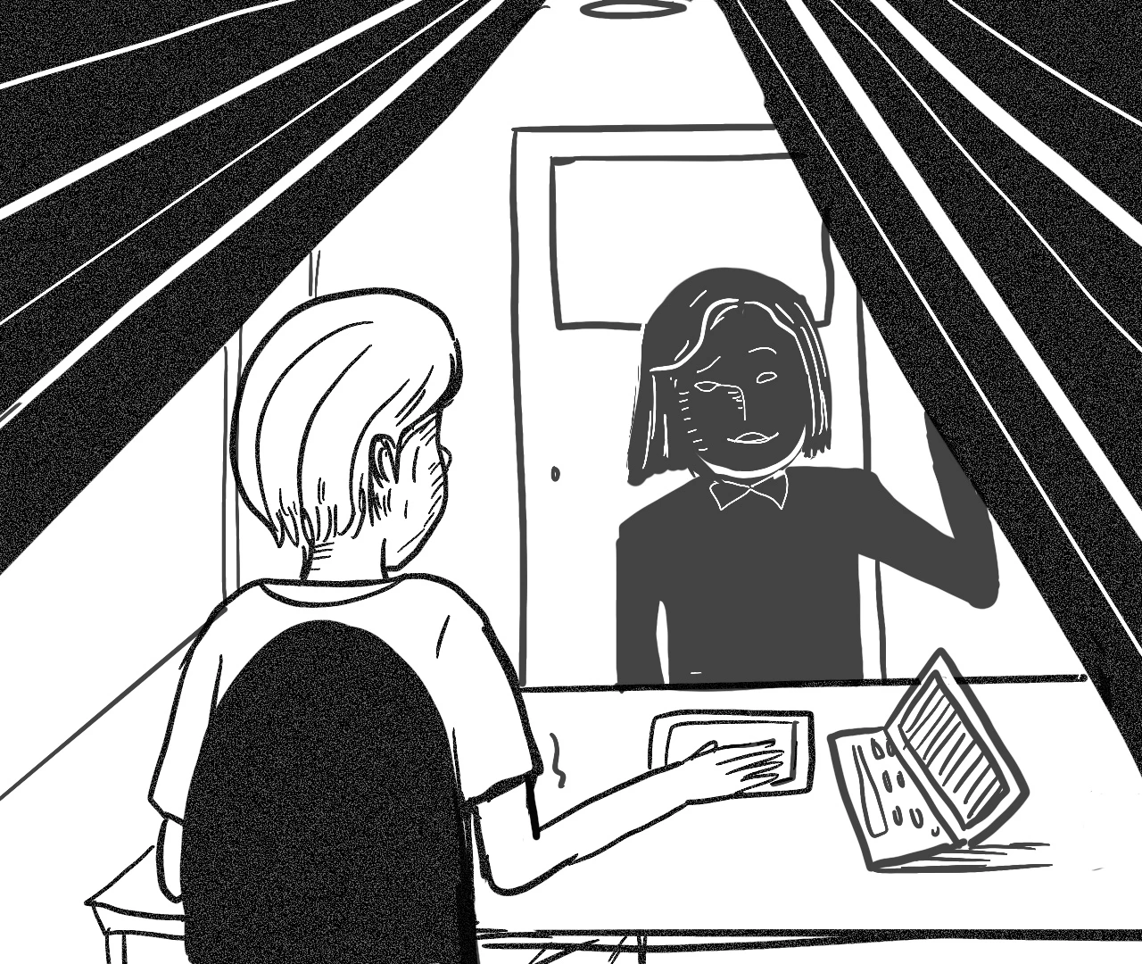 여기 어두컴컴한 골방 안 두 명의 여자가 서로를 마주 보고 있었다. 그 둘 사이에 조명은 깜빡깜빡 금방이라도 나갈 것처럼 불안하게 흔들리고 있었으며, 경찰로 보이는 한 여자는 검은 펜을 딸칵딸칵 눌러대며 종이에 뭔가를 적고 있었고, 반대편에 앉은 '주연'이라고 불리던 여자의 표정을 유심히 무언가를 쳐다보고 있었다.