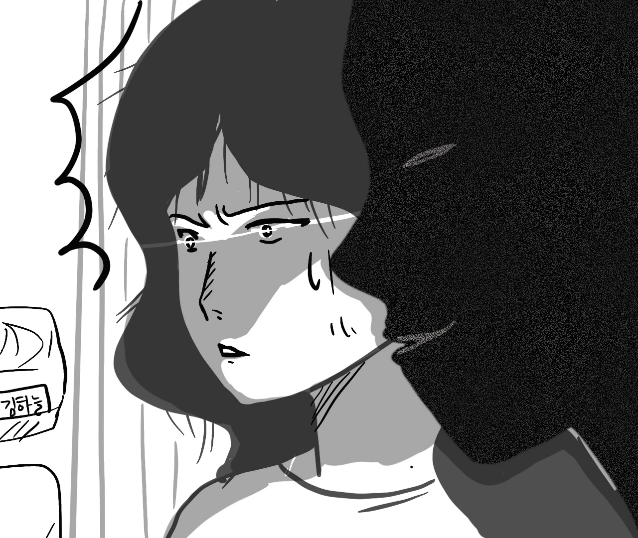 그 소리에 중환자실에서 갑자기 문 밖으로 나온 간호사의 얼굴에 당황함이 가득 묻어있고 눈은 밖에 서 있던 그녀의 얼굴을 똑바로 쳐다보지 못했다. 그런 간호사를 보며 불안감에 휩싸인 여자가 중환자실에 들어가겠다며 난동을 피기 시작했다. 그런 그녀의 두 팔을 꽉 쥐며 간호사가 말을 더듬으며 말했다.