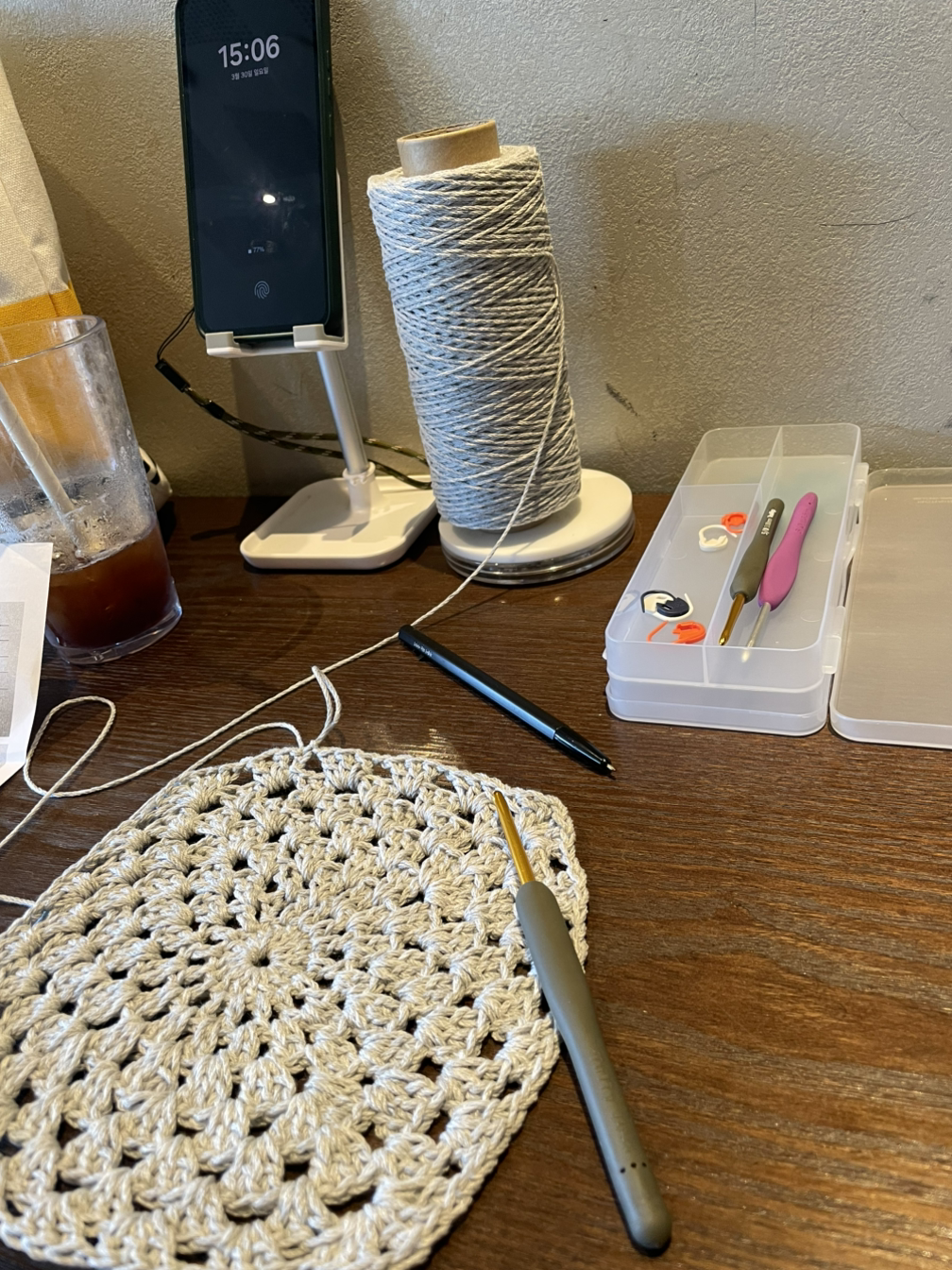 그리고 야초 미용은 보통 1시간 30분 정도 걸렸다. 그래서 그의 제안이 나쁘지 않다고 생각했다. 처음이기도 했다. 방구석 뜨개질러가 뜨개질 도구를 들고 야외에 나가는 것이. 이번에는 작게나마 응원해 줘야겠다 싶었다.