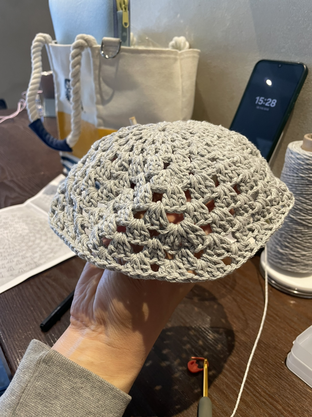 글을 쓰며 뜨개질을 하며 하루를 뿌듯하게 보내서 인지 밤이 되어서도 마음이 봄 햇살 같았다. 그런데 그때 그가 다 떴다며 여름모자를 가져왔다. 내 머리에 쓰니 모자가 너무 큰 게 아닌가? 역시나 나를 위해서 뜬다더니 결국 자신을 위한 것이었다.