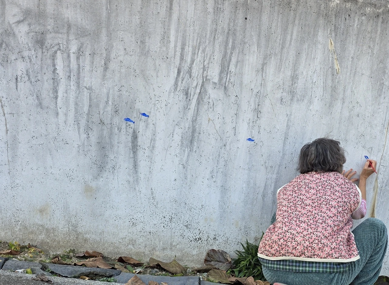 이야기가 아니라 사진이었다. 추운 날씨에도 벽화에 그림을 그렸다고 보낸 사진들. 엄마는 어깨를 들썩이며 벽에다 그림을 그리고 있었다. 무슨 그림이냐고 물으니. 아픈 외삼촌을 위해 동생인 엄마가 주는 생일선물이란다. 그래서 그림이 생선일 수밖에 없다는 엄마의 말에 웃음이 삐쭉 새어 나온다.