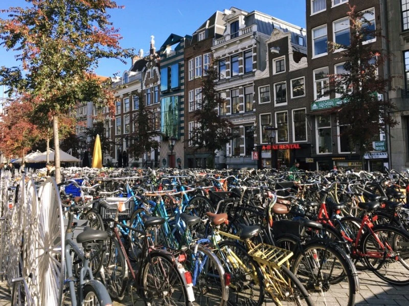 늦은 저녁 도착한 암스테르담에서 가장 유의해야 할 것은 낯선 사람도 소매치기도 아닌 "자전거"였다. 대부분의 길은 "자전거 전용도로"가 한가운데 널찍하게 자리 잡고 있었고 "보행자 도로"는 한쪽 구석의 좁은 길이 전부였다. 우리나라에도 유명무실한 자전거 전용도로가 있지만 잘 지켜지지도 않을뿐더러 또 지켜진다 하더라도 자전거가 사람들을 피해서 조심스럽게 다니는 형국인데, 여긴 정말 단어 그대로 자전거 "전용" 도로이다. 찻길에서 자동차가 그들만의 속도로 쌩쌩 달리는 것처럼, 자전거 전용도로 역시 체계적인 신호시스템에 따라 엄청난 속도로 내달리는 그야말로 그들만의 리그다!