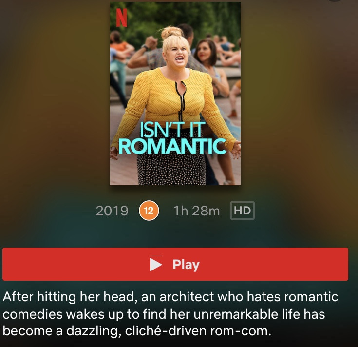 넷플릭스에서 최근 본 영화 중 가장 재미있게 본 작품 3편 선정! 이 중에서도 가장 재미있었던 건 "ISN'T IT ROMANTIC"! 일단 여자 주인공이 무척 귀여우면서도 정감이 갔고, 내용 전개가 뻔하면서도 지루하지 않았고, 모든 로맨틱 코미디의 요소를 다 짜깁기해서 총망라해 놓은 연출력이 유쾌했다.