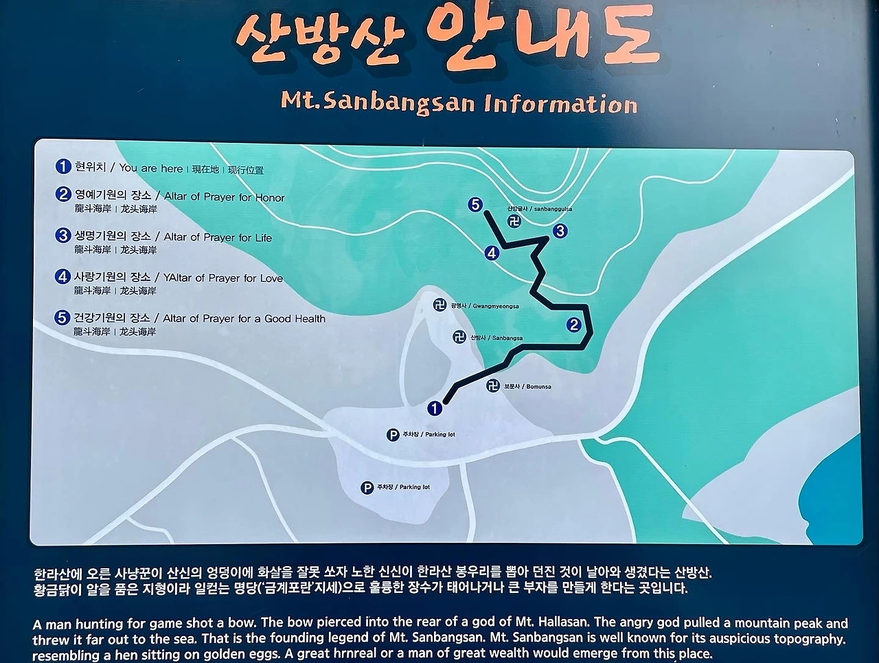 그래도 혹시 모르니 악보를 보고 만약에 대비해 준비는 하고 있어야 했다. 어찌 되었든 한결 가벼워진 맘으로 계속 버스를 타고 이동을 얼마만큼 했을까 드디어 한 시간쯤 지난 후 산방산 도착!